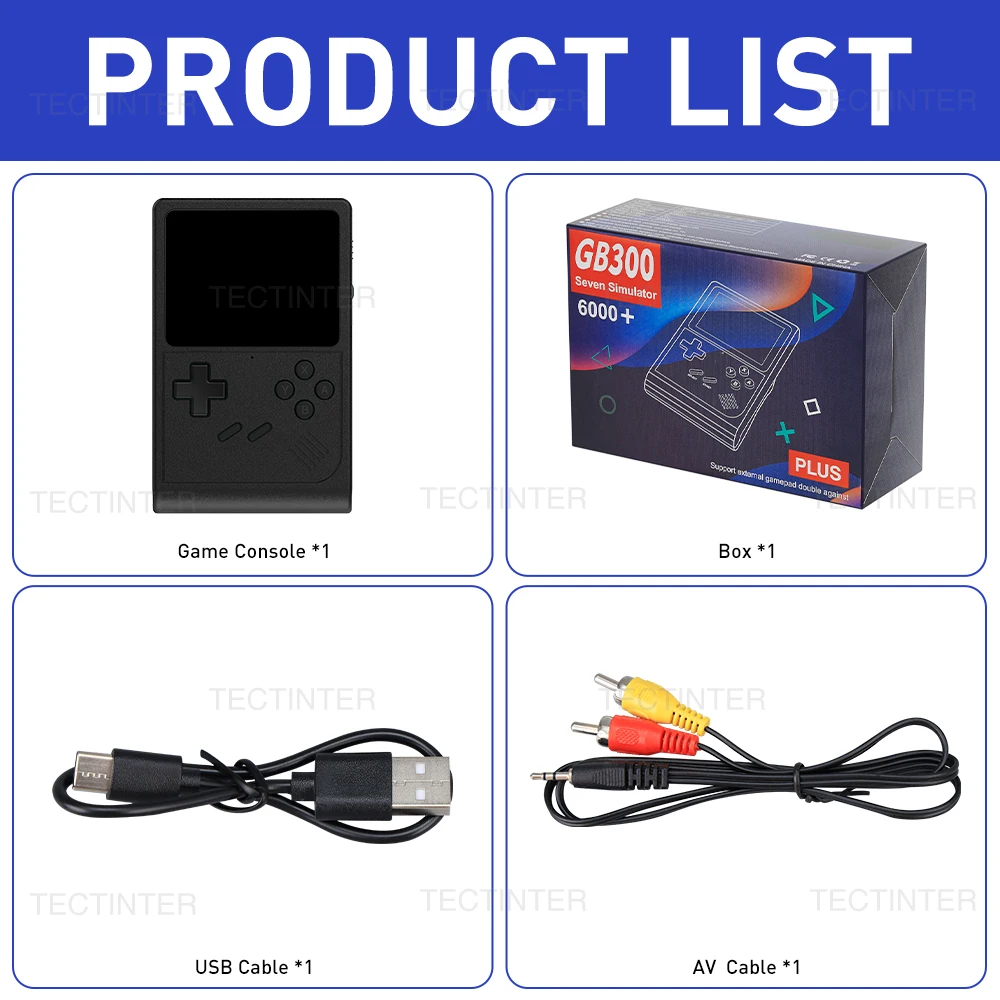 Comprar Reproductor de juegos portátil GB300, pantalla de 3,0 pulgadas, consola de videojuegos para TV, salida AV, consola de juegos Retro integrada, 8G, más de 6000 juegos
