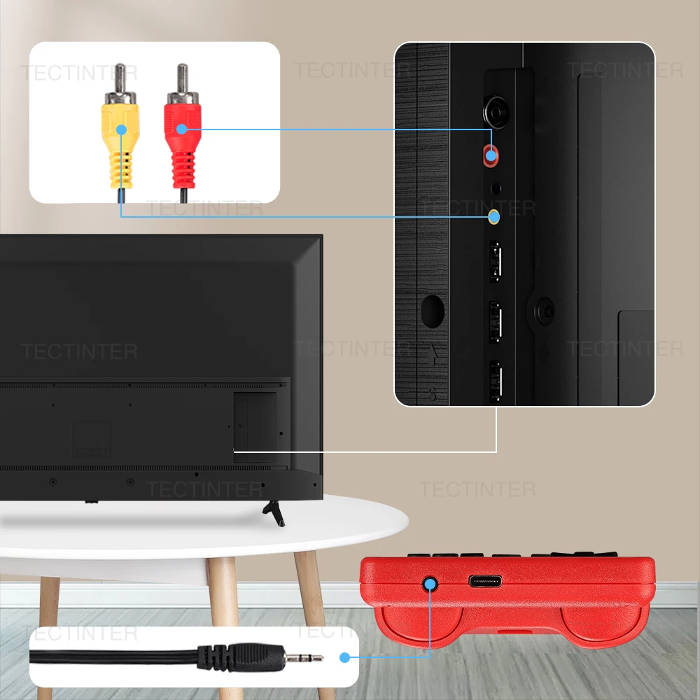 La consola de juegos GB300 con interfaz AV le permite conectar la consola de juegos con pantalla HD a su televisor a través de la salida AV para videojuegos animados y emocionantes.