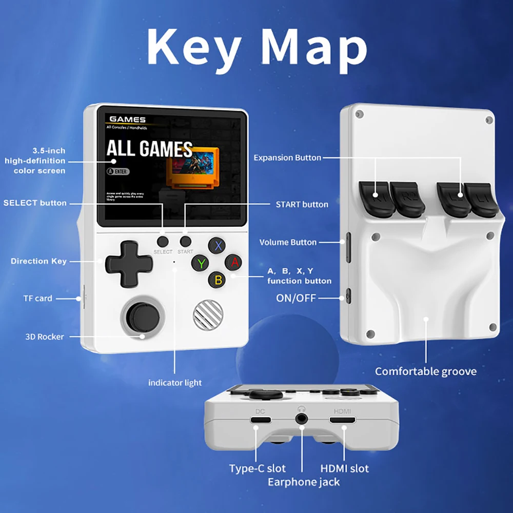 Esta consola de juegos portátil tiene múltiples funciones principales, integradas en más de 20.000 juegos clásicos seleccionados.Pantalla suave IPS de alta definición con joystick de alta precisión, soporte para descargar y coleccionar juegos, soporte para 14 tipos de emuladores, que cubren una amplia gama de juegos.