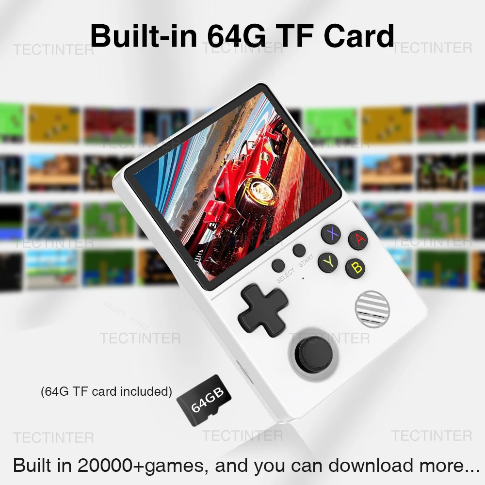 La consola de juegos integrada con una tarjeta TF de 64 GB incluye más de 20000 juegos y 14 emuladores, y también admite la descarga de juegos usted mismo.