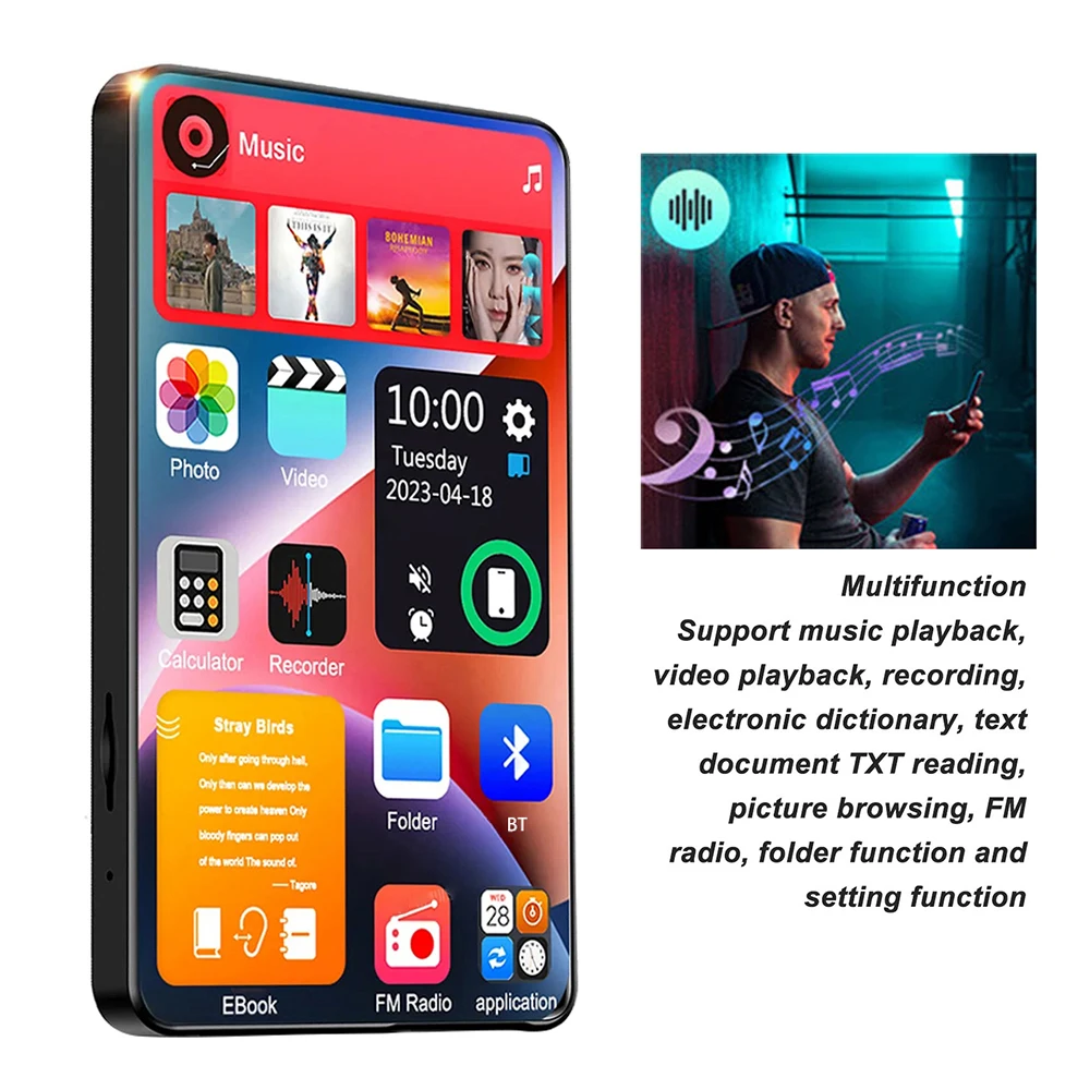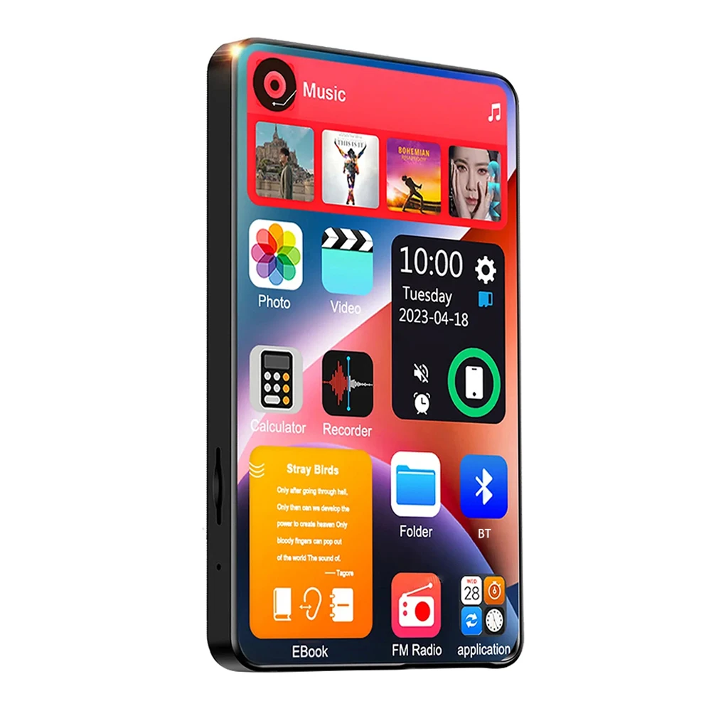 Reproductor de MP3 de 4 pulgadas, reproductor de música Bluetooth, altavoz incorporado, reproducción de vídeo MP4 de pantalla completa de 16G con grabación de Radio FM para Walkman