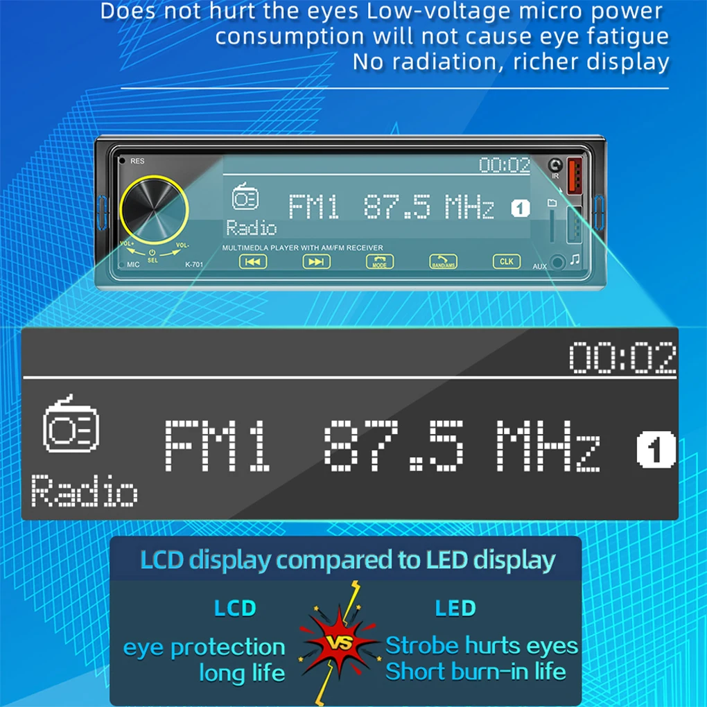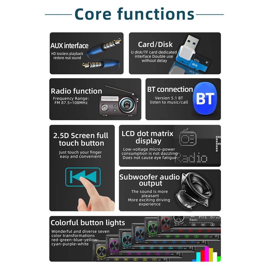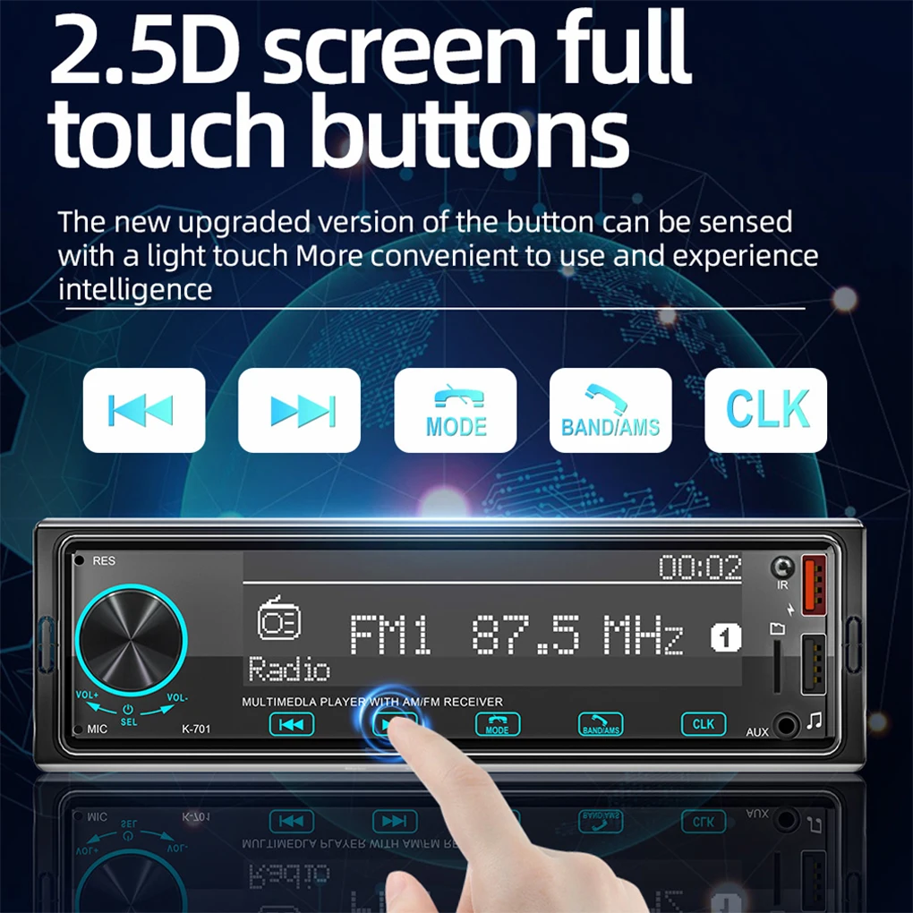 Fácil de usar: Este reproductor MP3 en el tablero está diseñado con botón táctil y es cómodo de manejar.