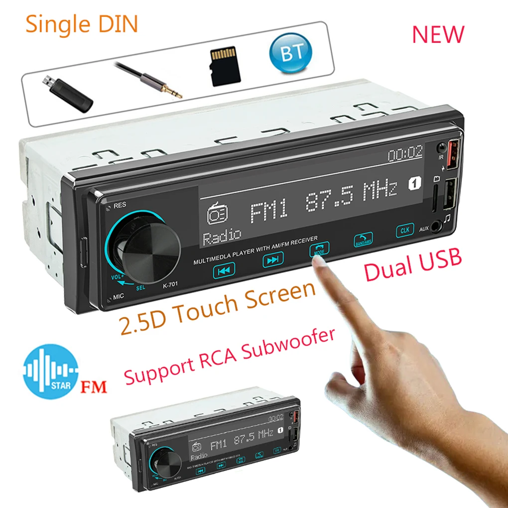 Comprar Reproductor MP3 Digital de un solo DIN, puerto USB para vehículo, compatible con Bluetooth 5,1, entrada AUX, receptor de Radio Multimedia para automóvil