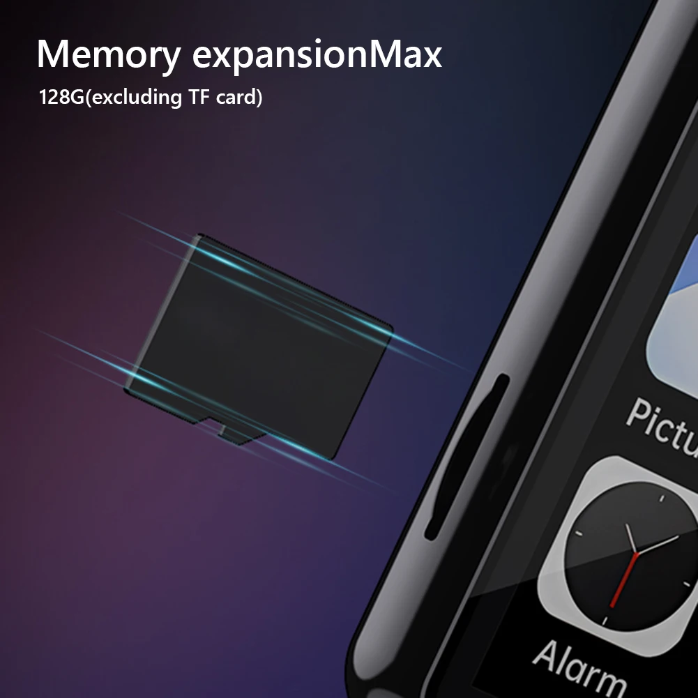 4. Soporte de expansión de tarjeta TF:Mejora tu biblioteca de música con la ranura para tarjeta TF del reproductor de MP3 deportivo, permitiendo una expansión de memoria externa de hasta 128GB. Almacena miles de canciones de alta calidad sin preocuparte por quedarte sin espacio (tarjeta TF no incluida, compra una tarjeta TF de ≤ 128GB por separado).