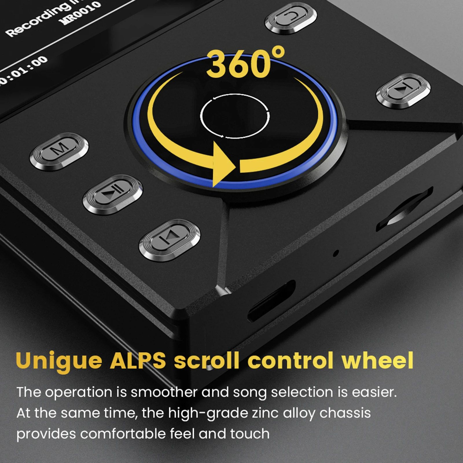 3.Artesanía de moda:Fabricado con aleación de aluminio CNC de precisión, este reproductor de música portátil es elegante y no requiere huellas dactilares.El exclusivo control de ruedas navega rápidamente por las pistas.Los botones de menú y retorno con un solo clic ofrecen una operación sencilla y el vidrio templado garantiza durabilidad.