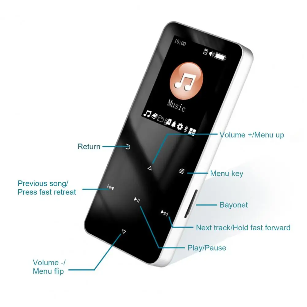 Reproductor de Mp3 con memoria de 16GB Batería de larga duración Reproductor de Mp3 Reproducción de 30 horas Memoria de 16GB Sonido Compatible con Bluetooth 5,2 Alarma