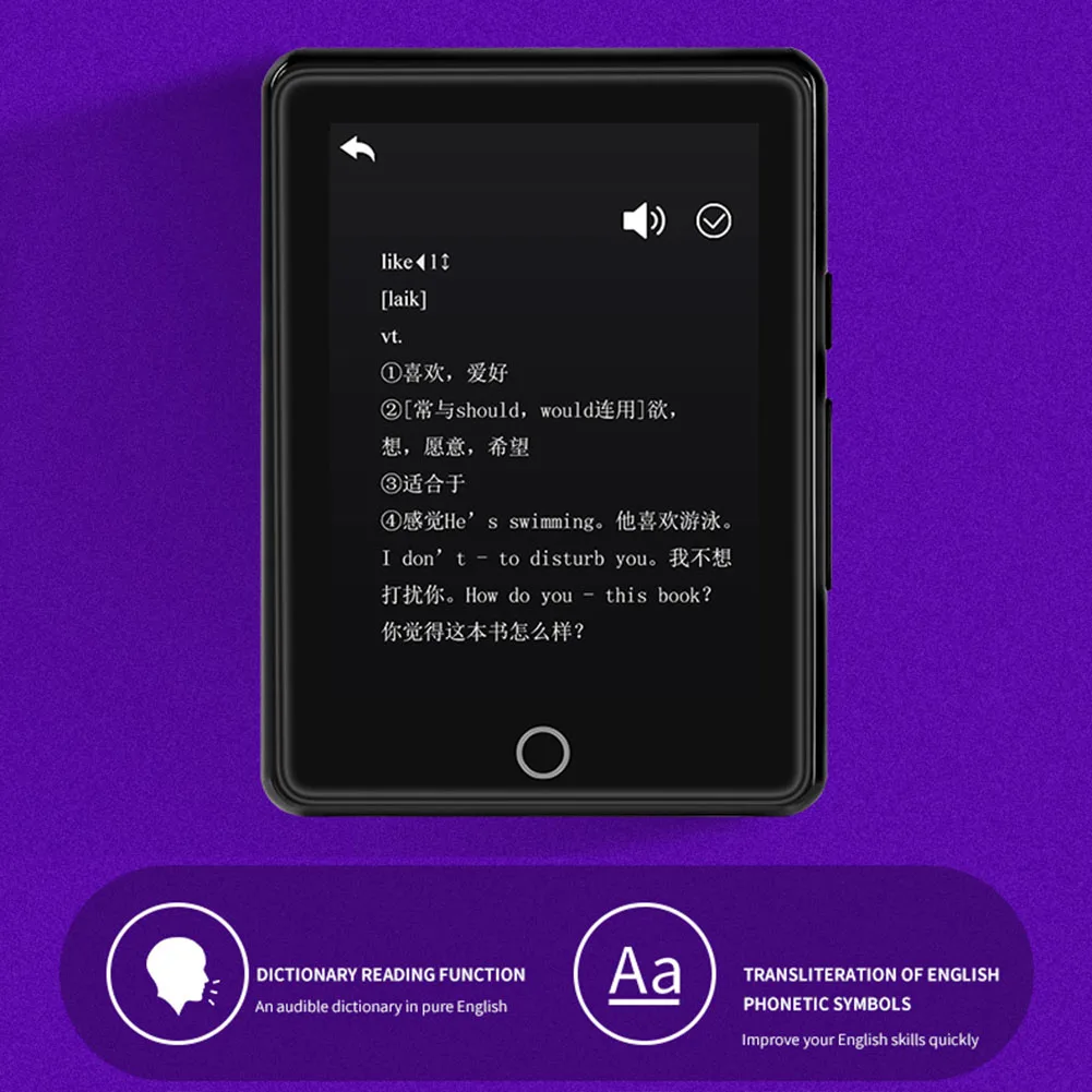 Función: compatible con Bluetooth, pantalla táctil, lectura de libros electrónicos, Radio FM, grabadora de voz, reloj mundial