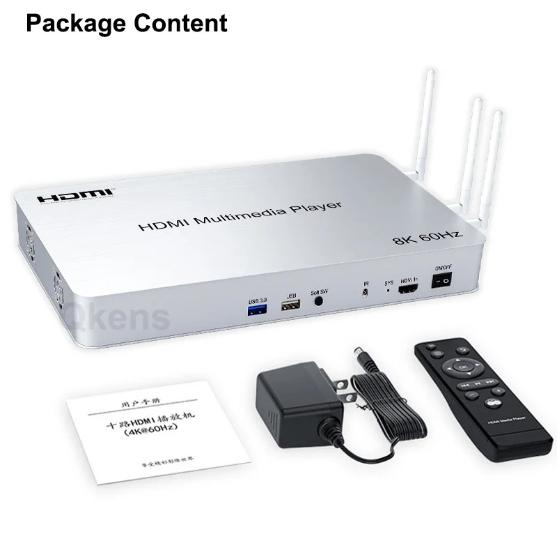 Contenido del paqueteReproductor multimedia 8K 10-Ways X1Adaptador de corriente 12V/2A X1Manual de usuario X1Control remoto sin batería X1