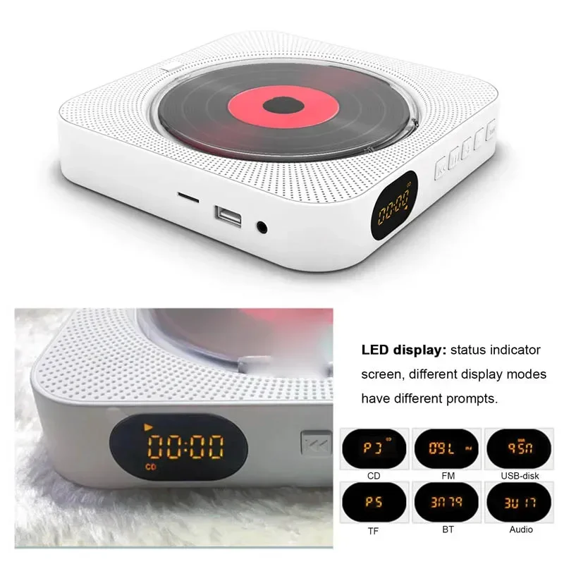 Con una pantalla LED, es fácil conocer el modo de reproducción actual.Equipado con cubierta antipolvo para CD, apariencia blanca simple para evitar que el polvo afecte el efecto de sonido.