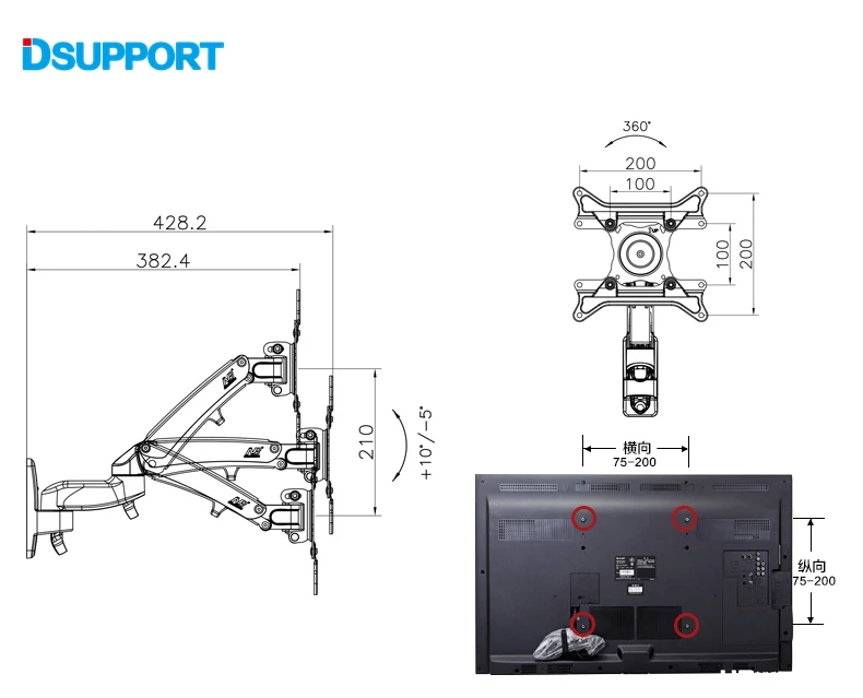Compatible con VESA: 75*75.100*100, 200*100, 200*200mm