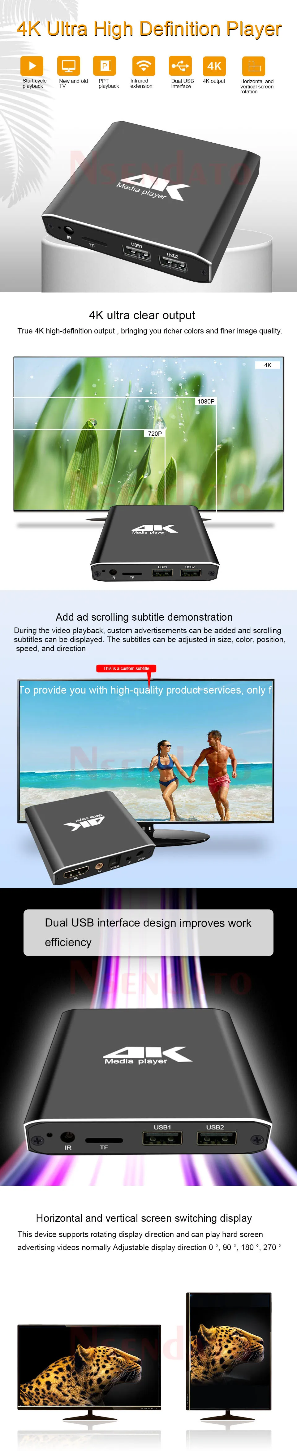 Reproductor multimedia HD publicitario 4K H.265, Mini 1080P Full HD, MP4, reproductor multimedia HDD para tarjeta Micro SD TF, unidad de bolígrafo de disco USB