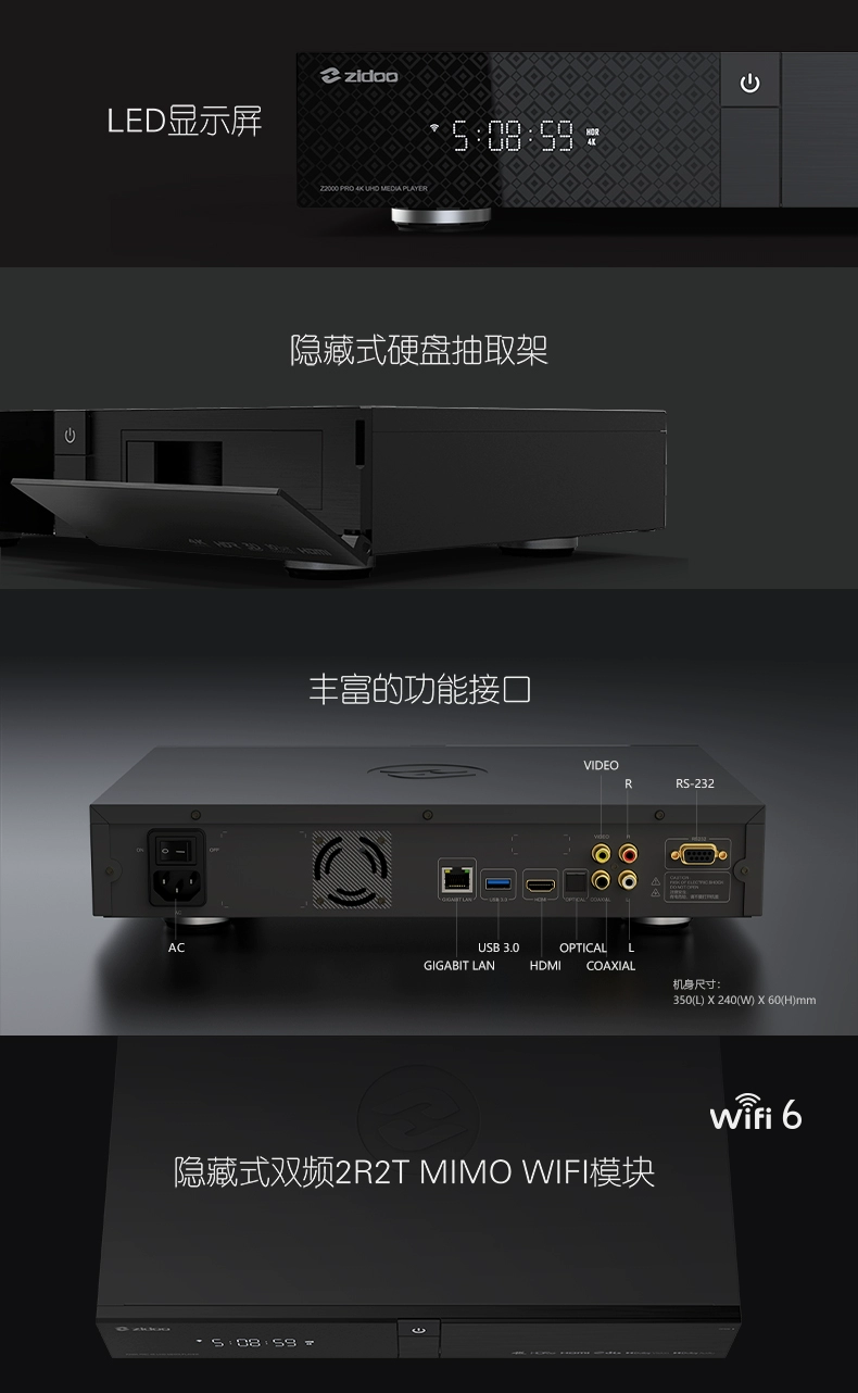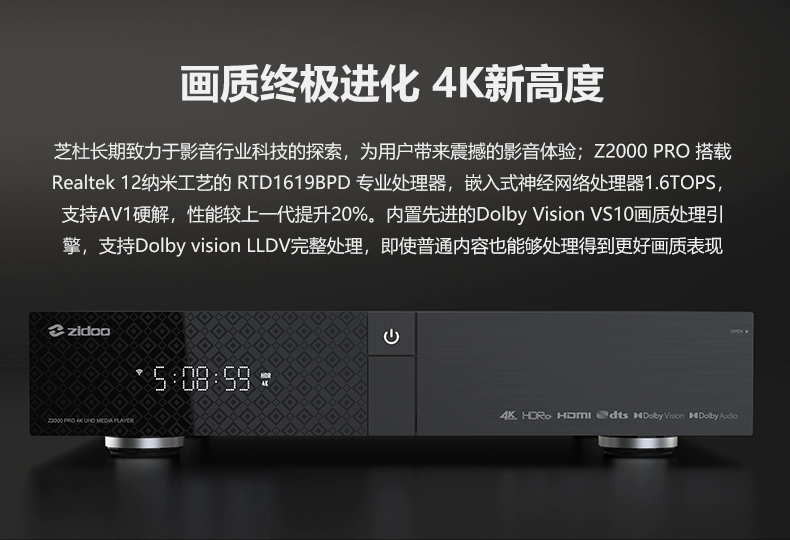 Reproductor multimedia ZIDOO Z2000 PRO 4K, chipset RTD1619BPD, sistema operativo Android 11, compatible con HDR10+ y todo HDR Technoly, bahía de HDD oculta y Ante