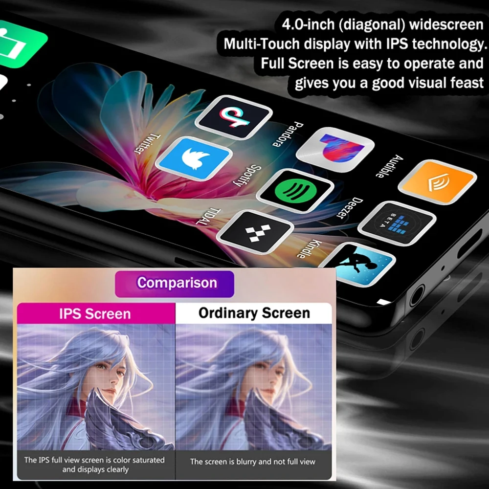 ☆ Experimente una excelente experiencia audiovisual --- Pantalla de alta definición de 4 pulgadas, compatible con vídeo de alta resolución 720P, 1080P y reproducción de música sin pérdidas de alta fidelidad, el reproductor tiene todo lo que un gran reproductor MP4 debería tener. Le brinda una visualización de películas y disfrute musical sin igual.
