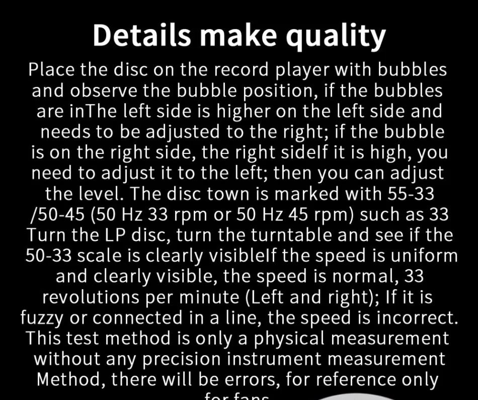 -1 disco de vinilo LP de alta fidelidad con función de medición de velocidad de instrumento de nivel, 1 disco de presión(Elija más cantidad, más barato)