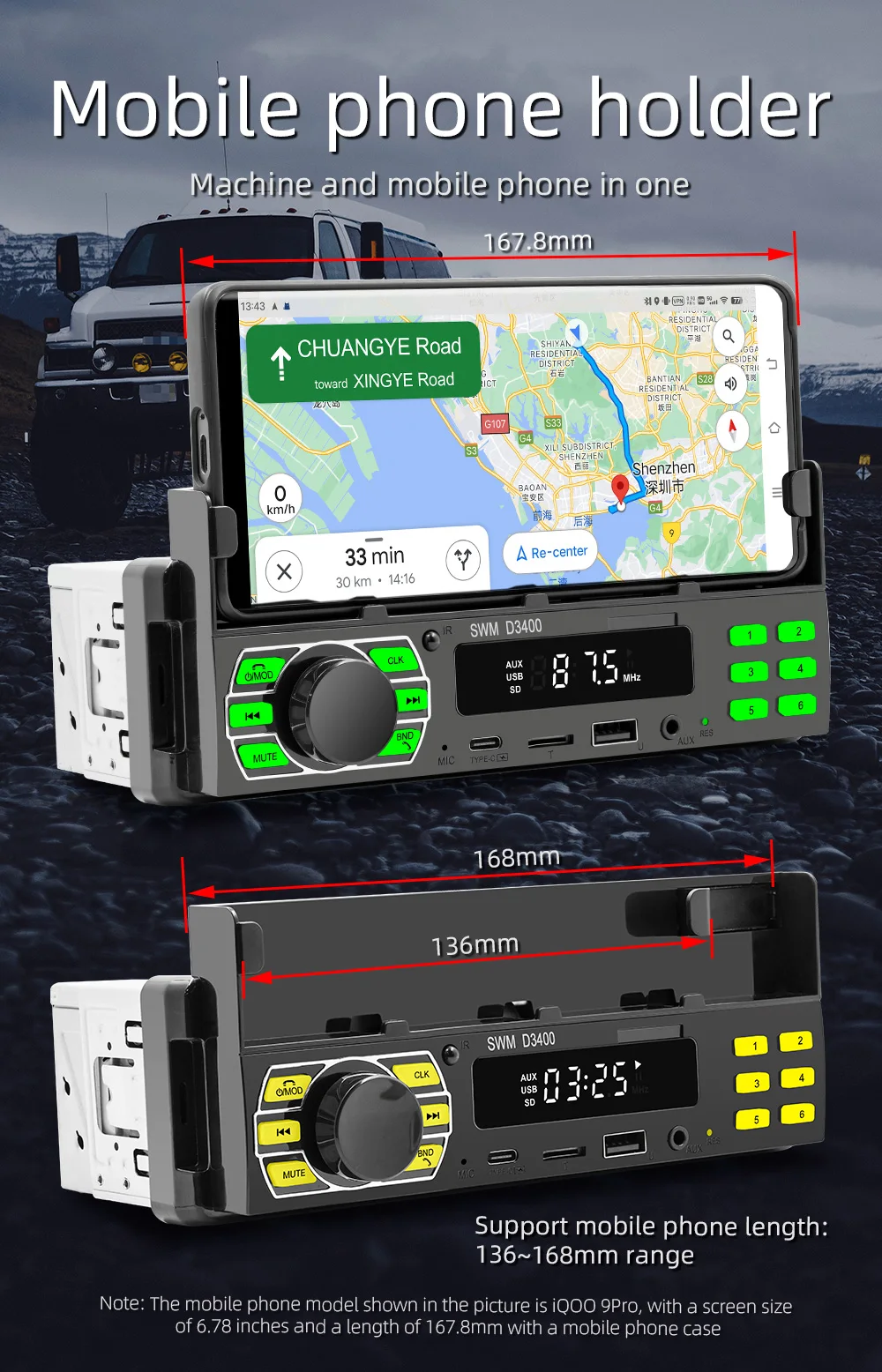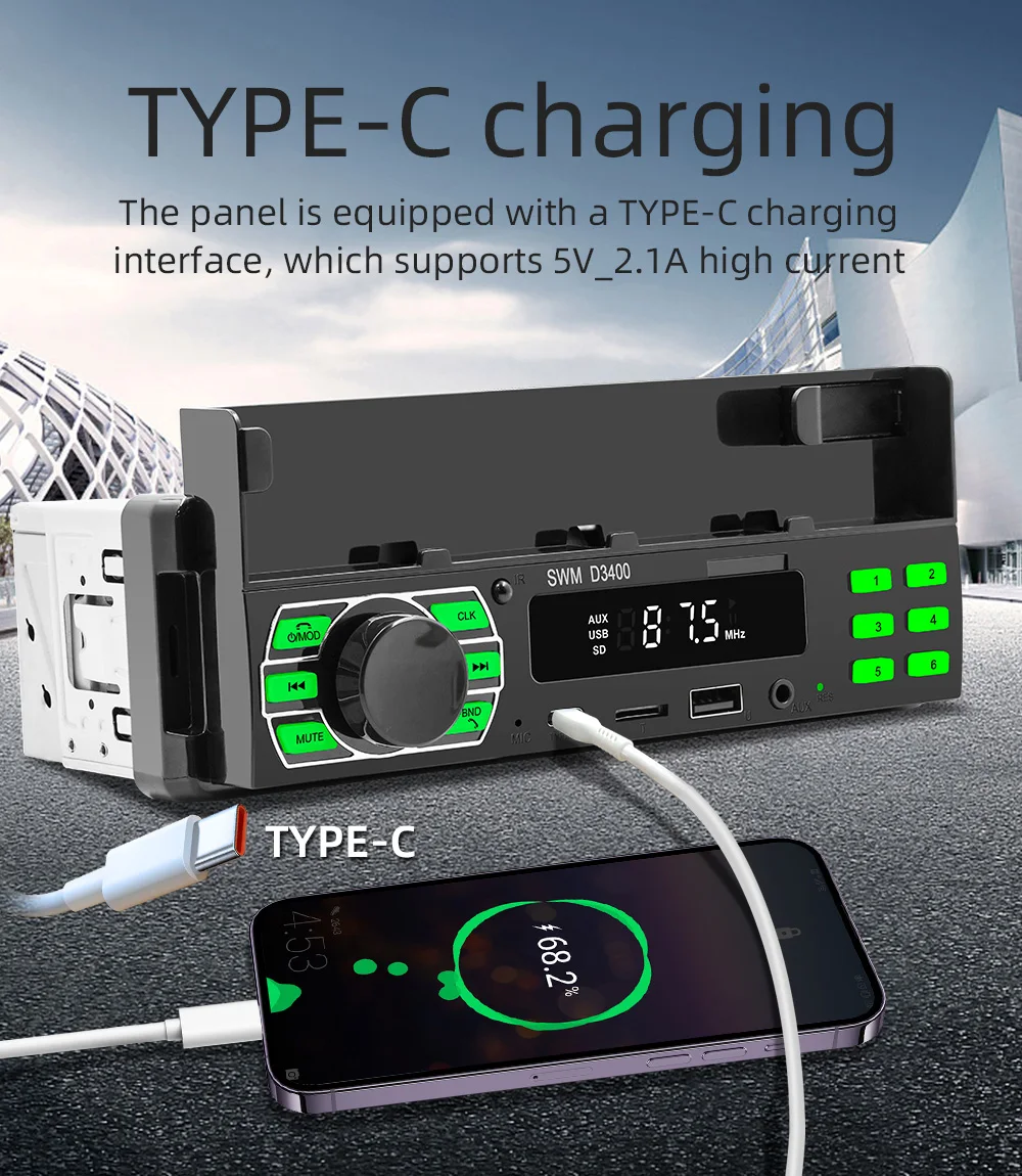 Comprar Reproductor de Radio para coche 1Din MP3 Bluetooth USB TypeC TF AUX soporte para teléfono de coche reproductor Multimedia para coche