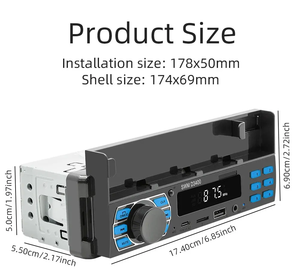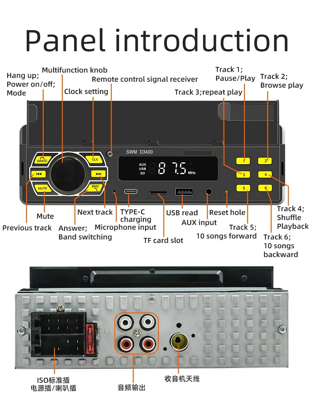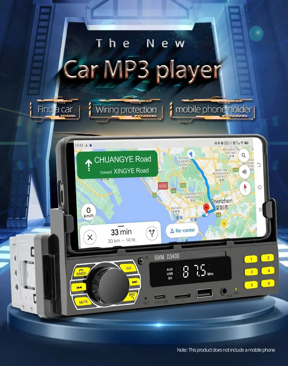 Comprar Reproductor de Radio para coche 1Din MP3 Bluetooth USB TypeC TF AUX soporte para teléfono de coche reproductor Multimedia para coche