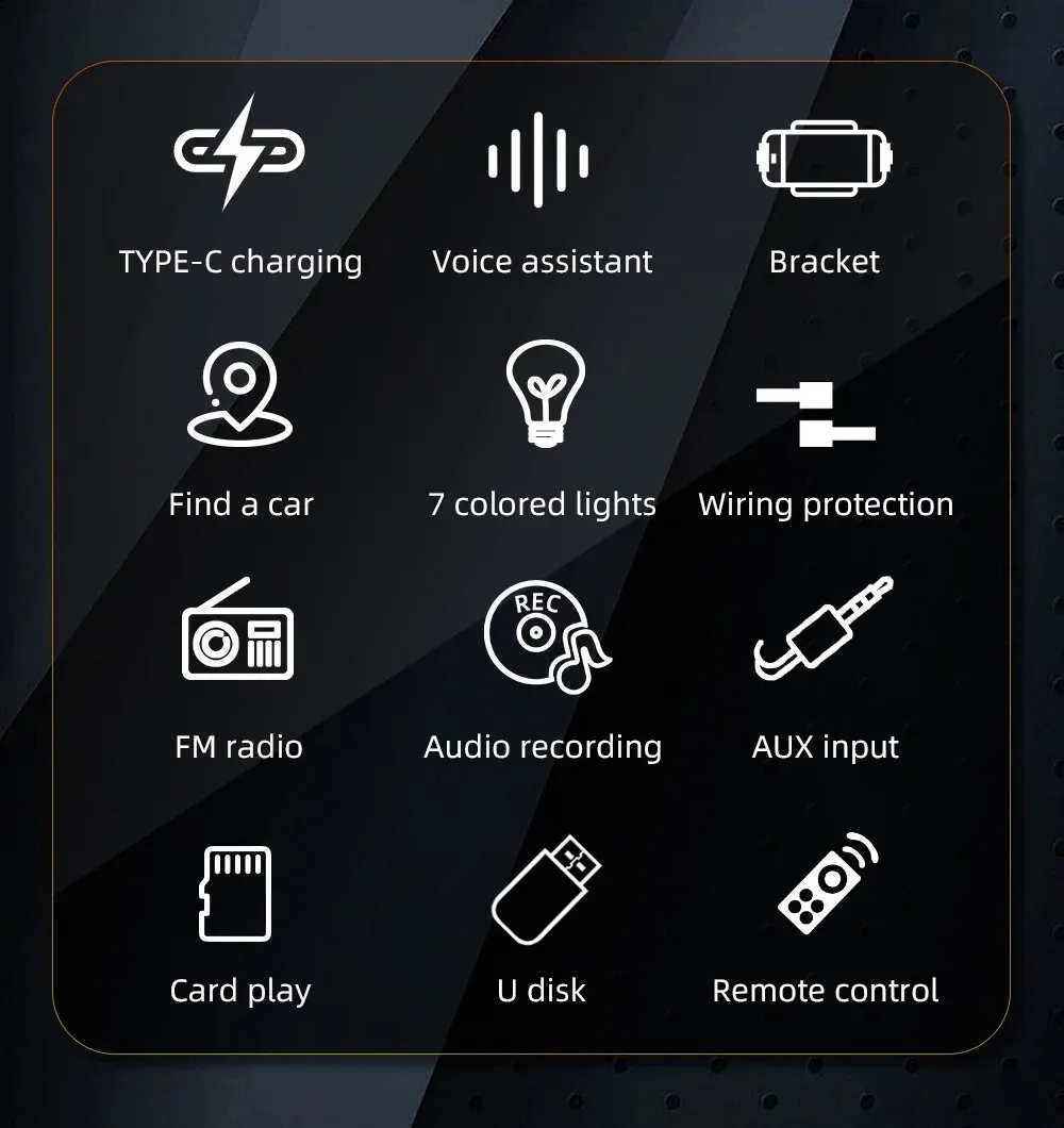 Interfaz USB, ranura para tarjeta TF, ranura de 3,5mm, carga USB tipo C