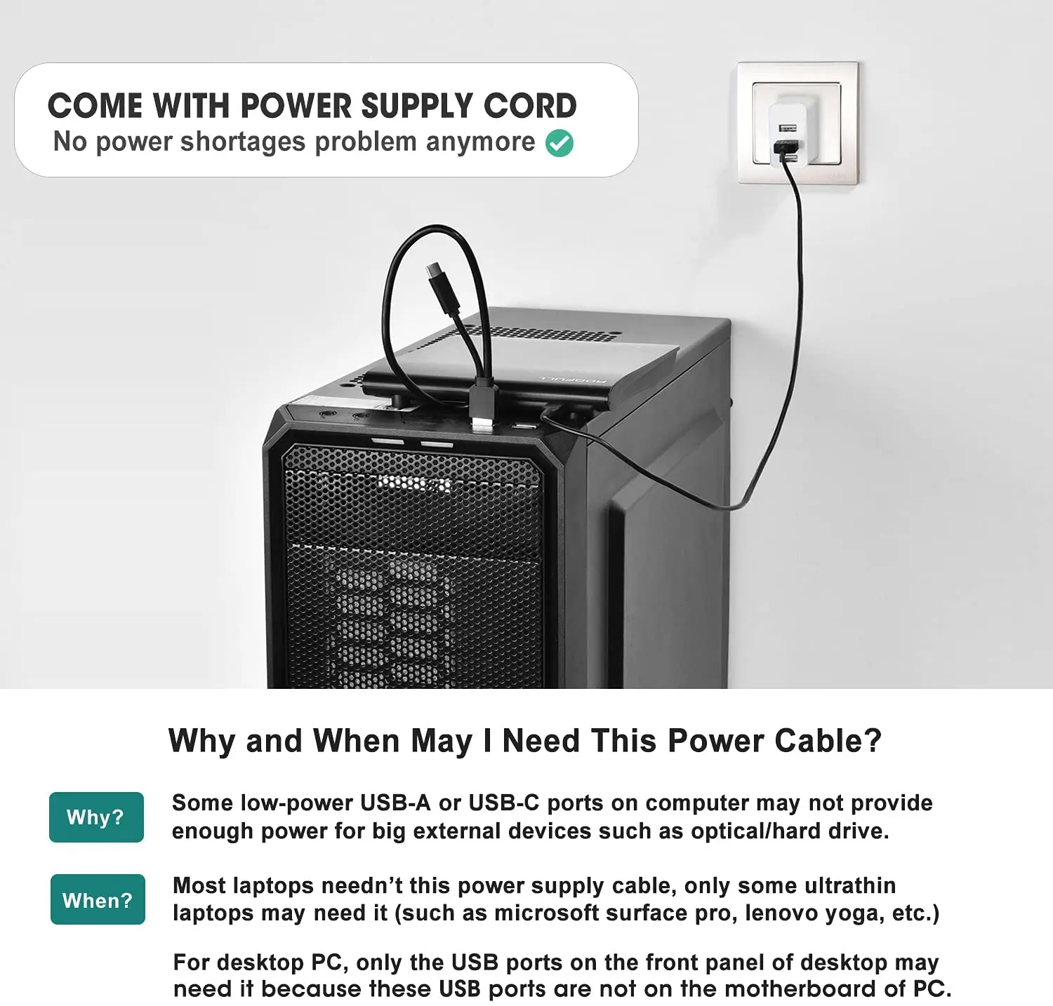 * Si su computadora puede proporcionar suficiente energía a través del USB 3,0 o el cable de datos de la USB-C, usted No hacer Es necesario utilizar este cable de alimentación.