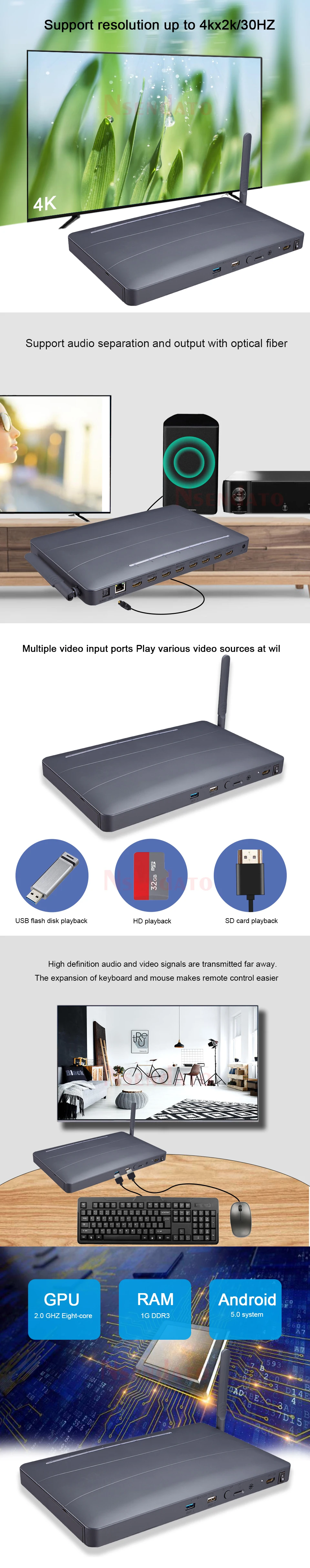 Reproductor de vídeo multimídia HDMI 4K 8 vías HDMI TV reproductor divisor de disco duro multimedia Android Multimedia TV Box para proyector de TV