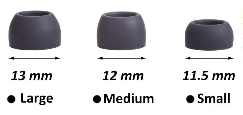 3 tipos de almohadillas, pequeñas (11,5 mm), medianas (12 mm), grandes (13 mm) pueden satisfacer sus diferentes necesidades
