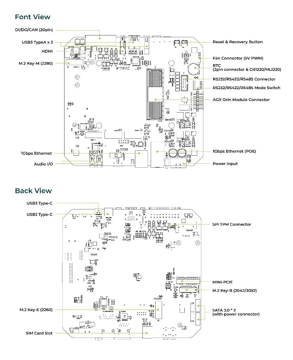 Construya la plataforma AI integrada más potente: Compatible con el módulo Jetson AGX Orin, que ofrece hasta 275 TOPS-8 veces más que Jetson AGX Xavier.La potencia se puede configurar entre 15W y 60W.