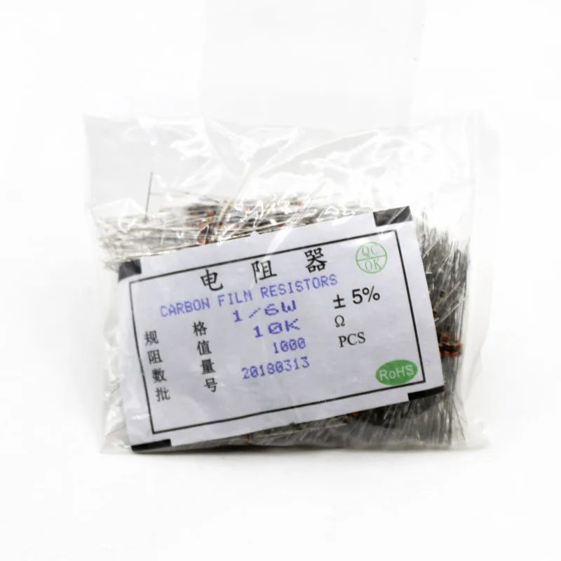 1000 piezas Diy resistencias de película de carbono 1/6 W 5% 1-100 120-910 1K-910K 1M-10M 0 Ohm 100 200 300 1K 2K 3K 1M 2M resistencia de 10M