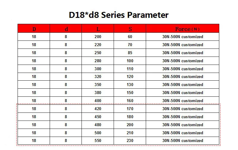 Comprar Resorte de Gas de 18x8 varillas, bisagra plegable, 50-500N, agujero de soporte de elevación de fuerza, distancia central de 420-550mm, distancia de carrera de 170-230mm, 2 unidades