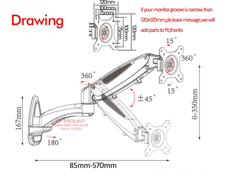 - Max load:5-16kg( plz note the screen weight need within this range, or the gas spring wont work)
