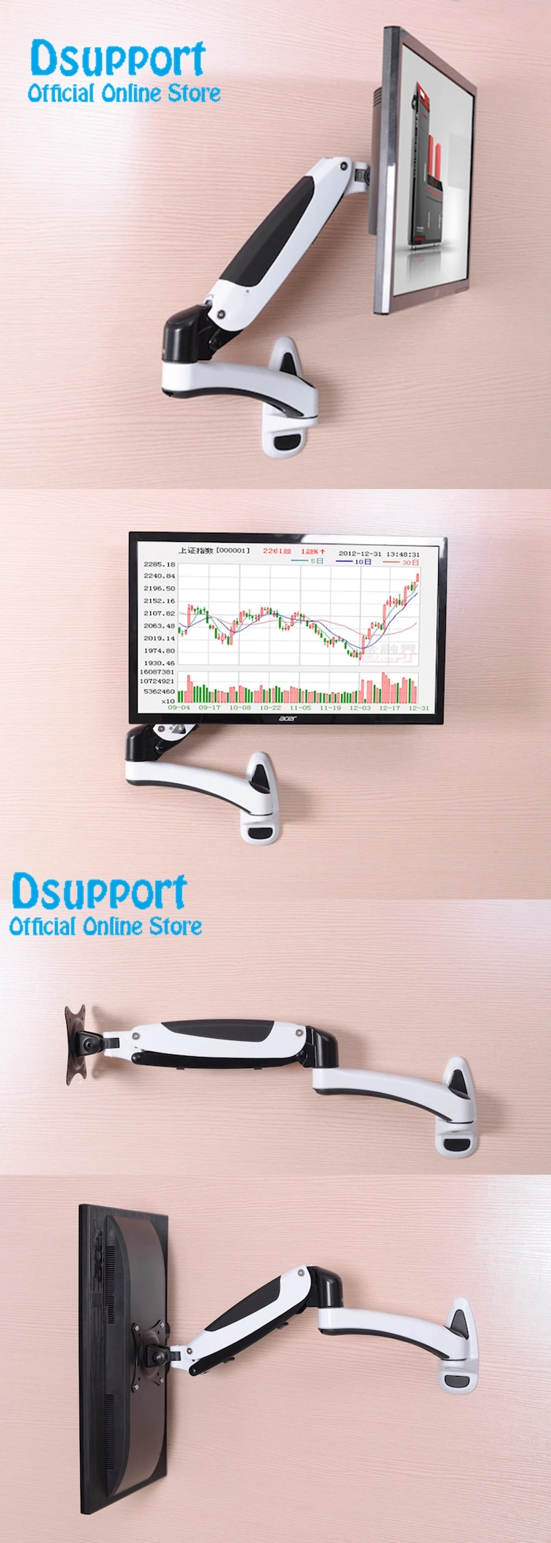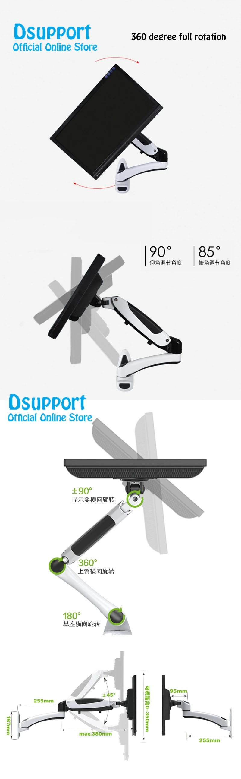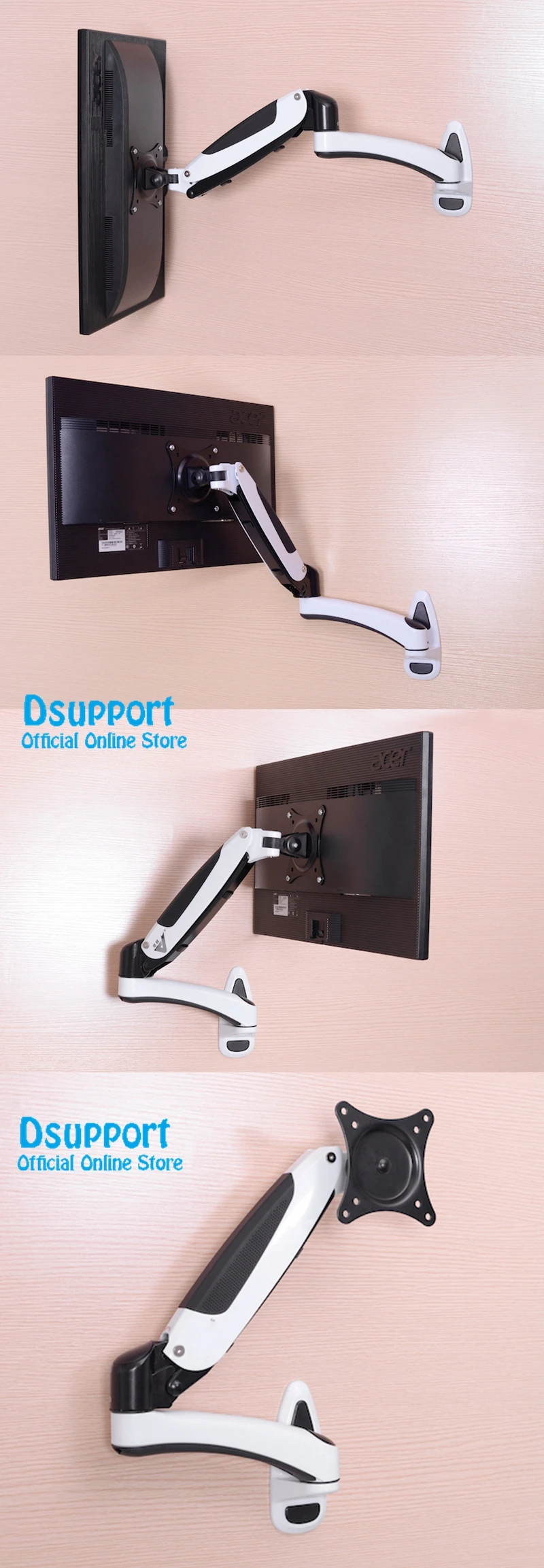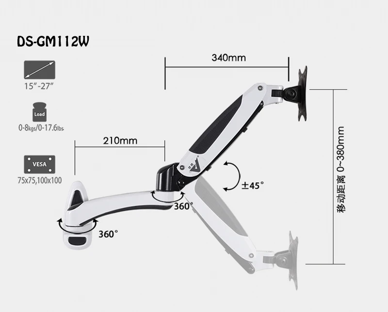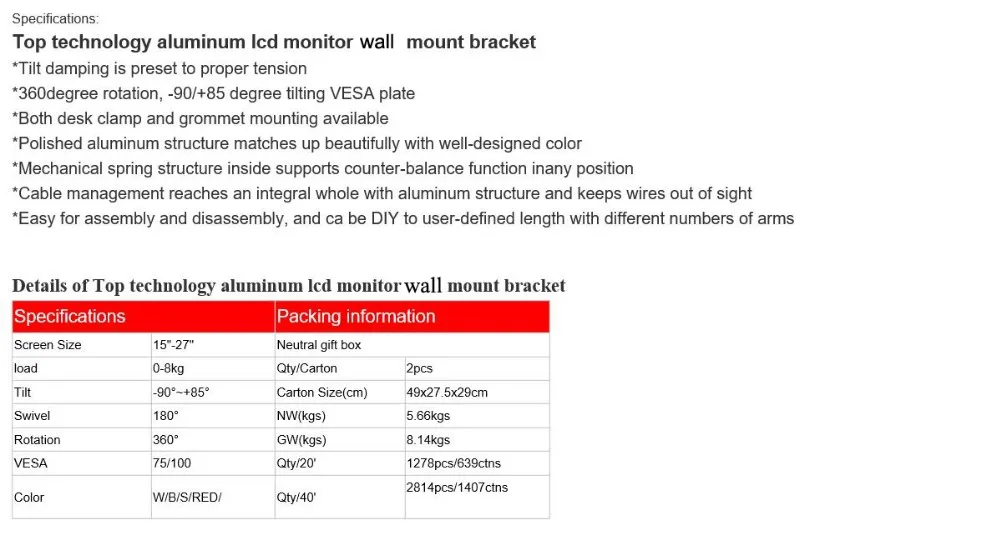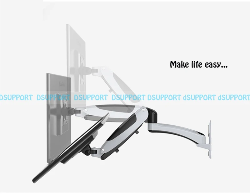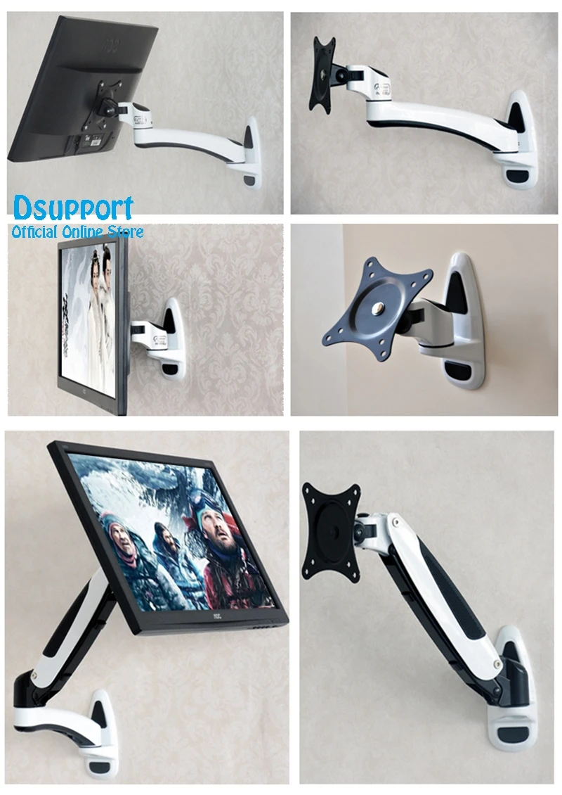 Aluminum Gas Spring 360 Degree Full Motion Height Adjustable LCD Monitor Holder TV Wall Mount Bracket Arm