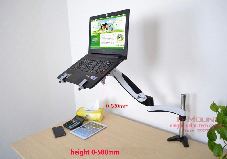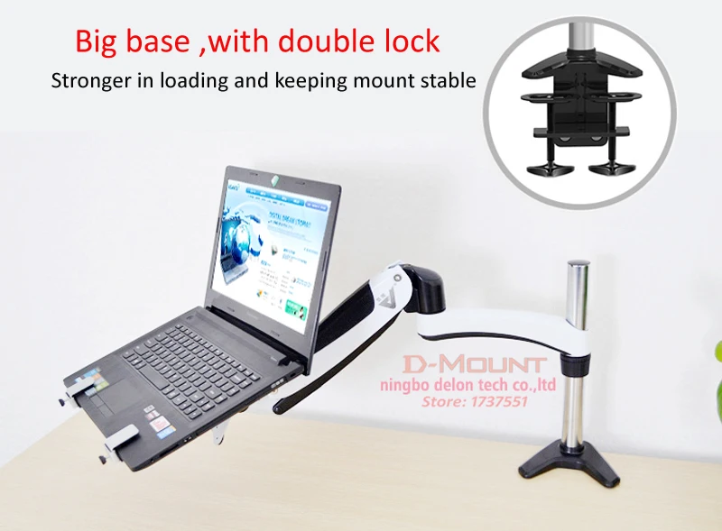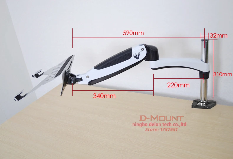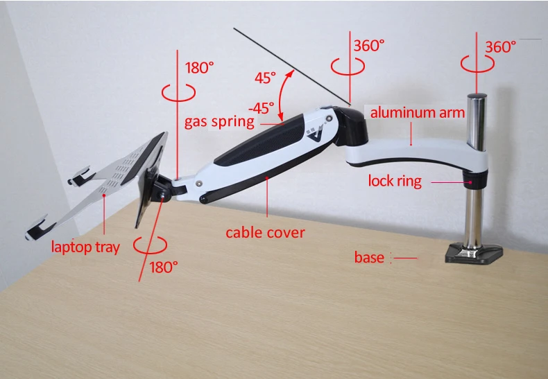 Comprar Resorte de gas fuerte de aluminio de movimiento completo para ordenador portátil, soporte giratorio de montaje de escritorio de doble brazo, abrazadera de orificio de ojal, bandeja de cuaderno, GST112T-LP20