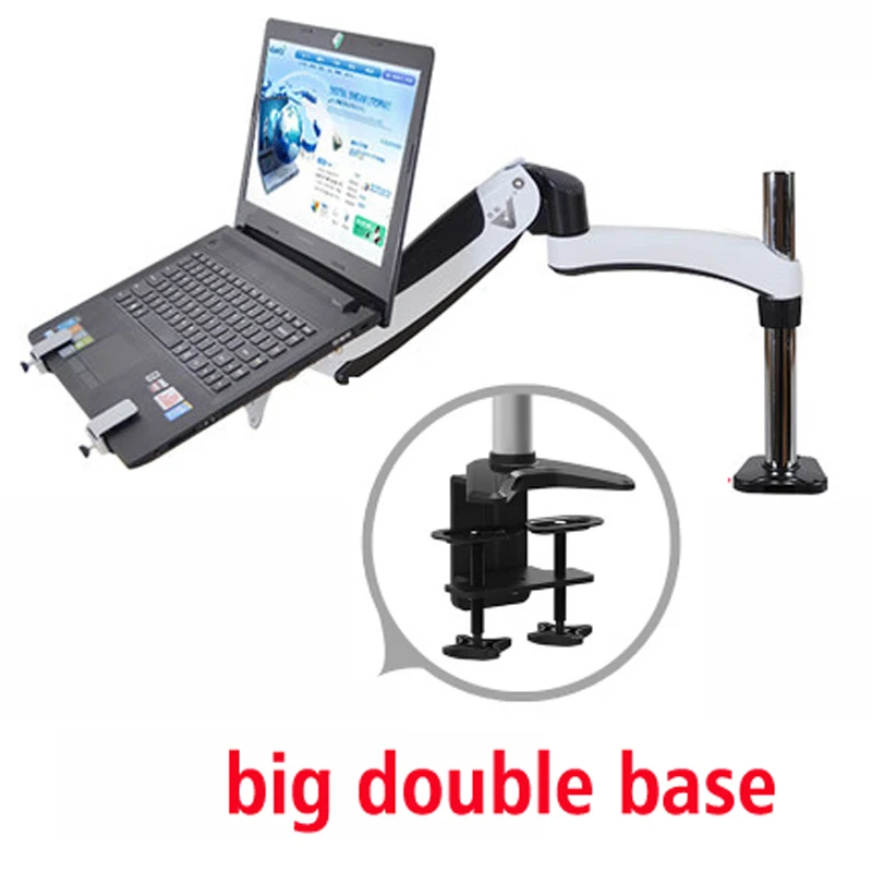 Comprar Resorte de gas fuerte de aluminio de movimiento completo para ordenador portátil, soporte giratorio de montaje de escritorio de doble brazo, abrazadera de orificio de ojal, bandeja de cuaderno, GST112T-LP20