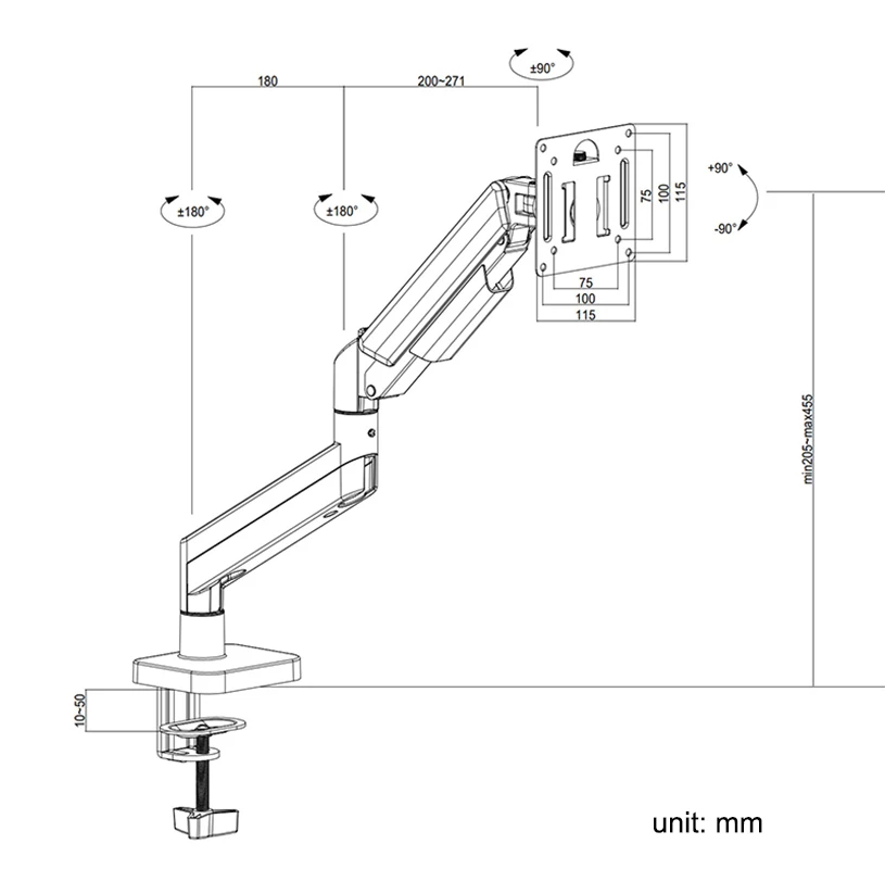 ■ Distancia de elevación vertical: 205 mm-455 mm