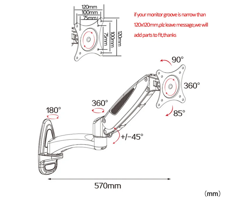 Comprar Resorte de gas GM112W para montaje en pared, brazo largo, inclinación de 360 grados, rotación de aluminio, 10-27 pulgadas, lcd, soporte de pantalla de monitor de movimiento completo, 0-8kg
