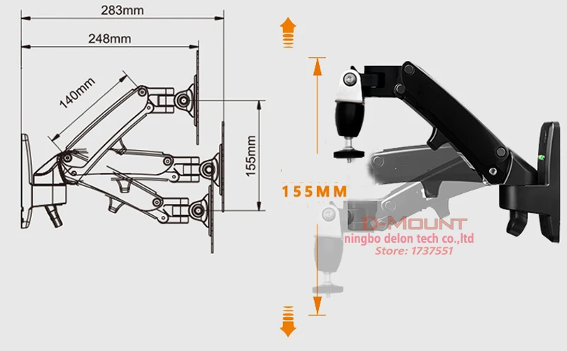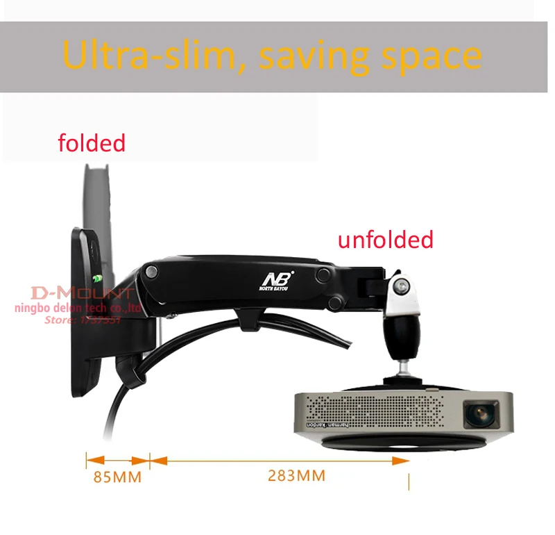 Comprar Resorte de gas universal para proyector, soporte de montaje en techo, aleación de aluminio, rotación de 360 grados, 2-7kg, DL-F120PR