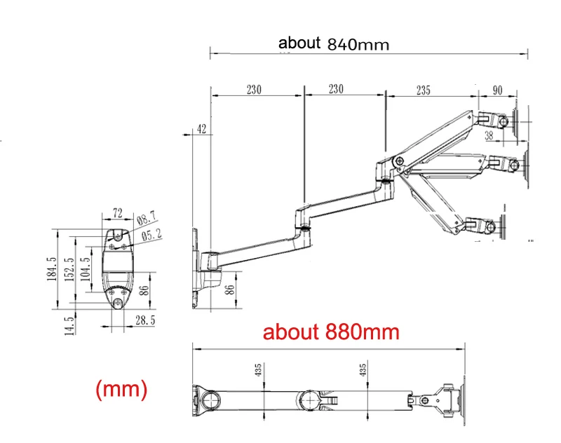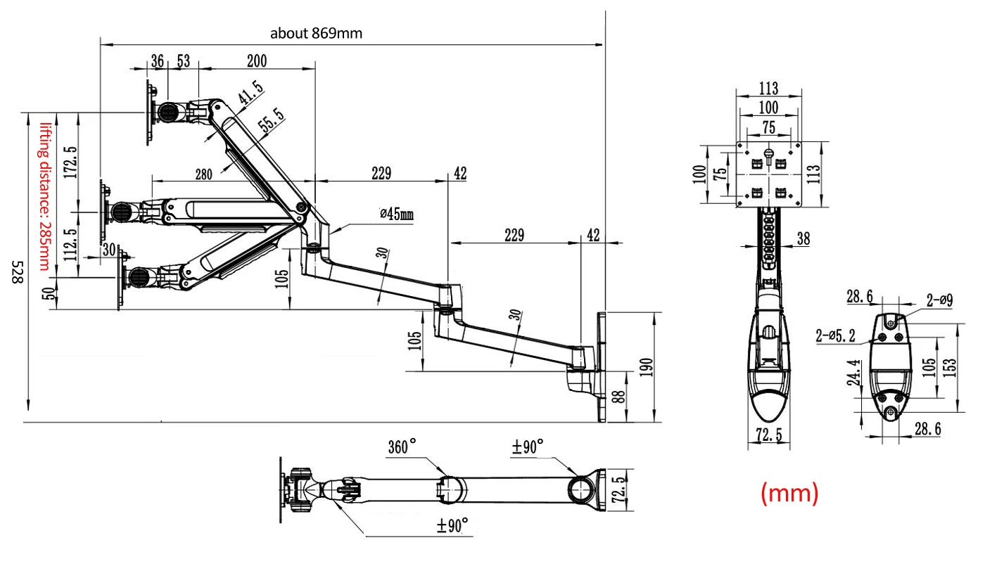 Comprar Resorte mecánico 7013, soporte de montaje en pared para monitor LCD de 10 "-27" 17 "-38", rotación de 360 grados, estiramiento de pícil de movimiento completo, 1-10kg, 3-11kg