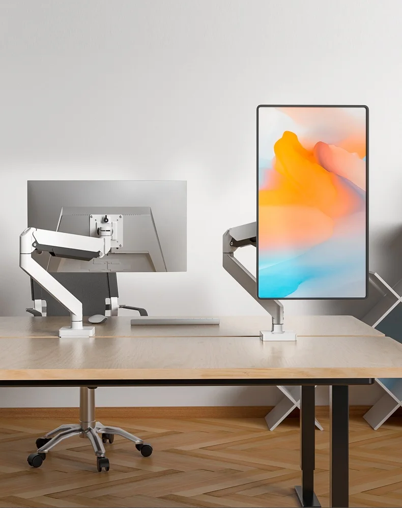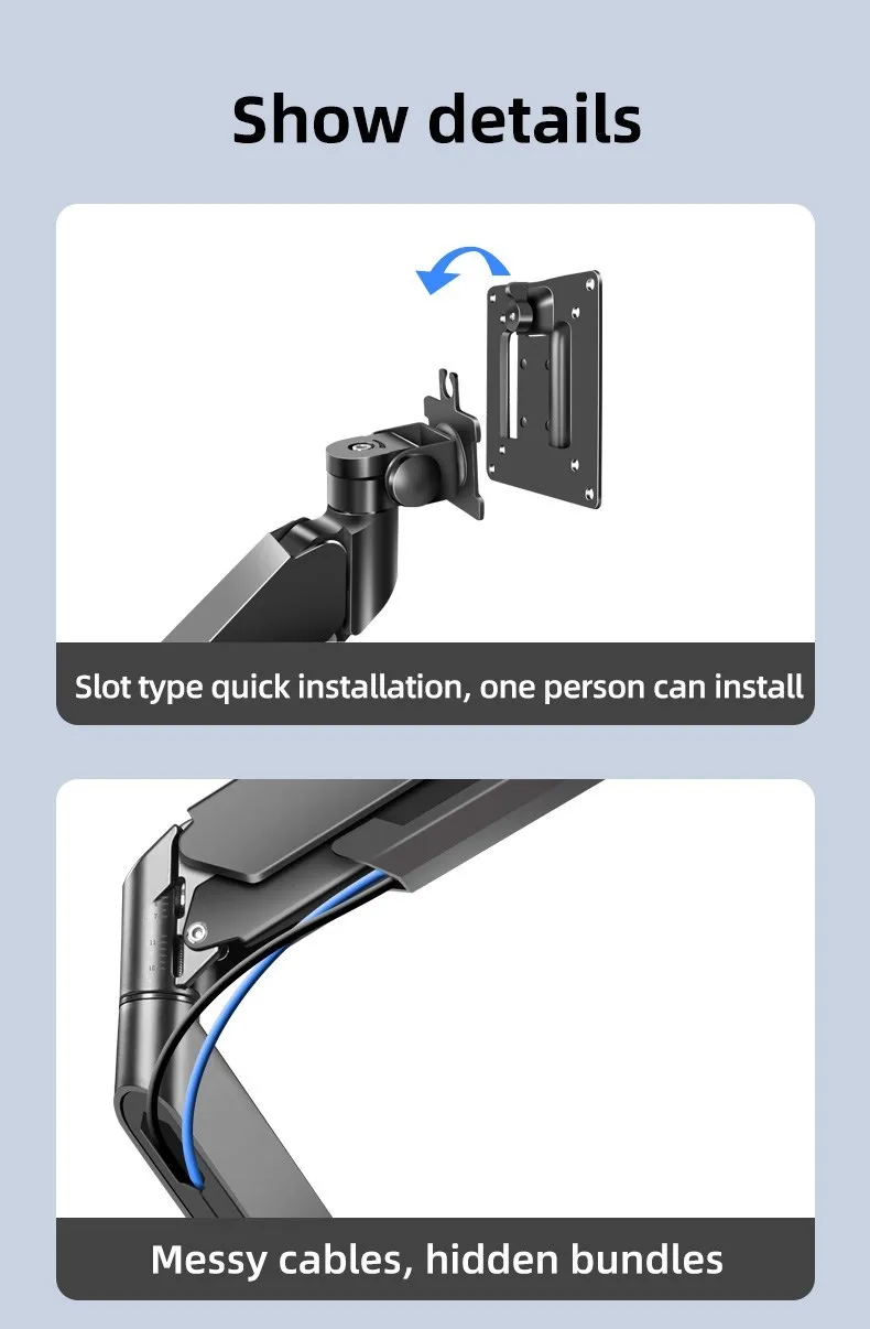 Comprar Resorte de presión de aire de un solo brazo, soporte de escritorio para monitor, abrazadera, ojal, soporte de escritorio para PC, 17-43 ", 15kg, vesa, 100x100, blanco, M7