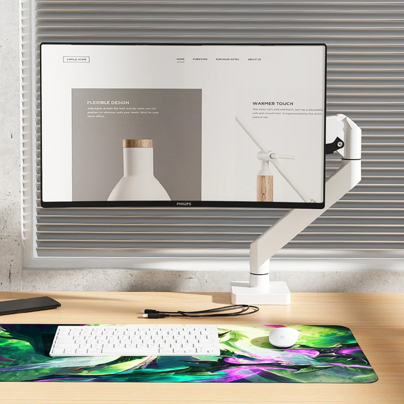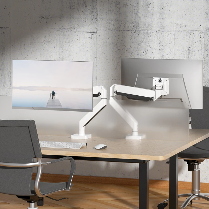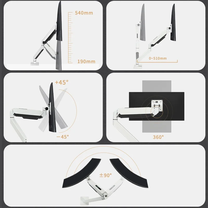 Comprar Resorte de presión de aire de un solo brazo, soporte de escritorio para monitor, abrazadera, ojal, soporte de escritorio para PC, 17-43 ", 15kg, vesa, 100x100, blanco, M7
