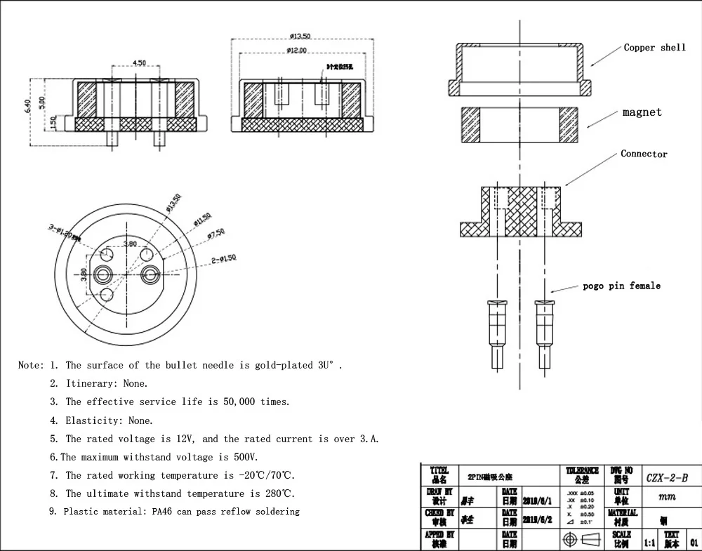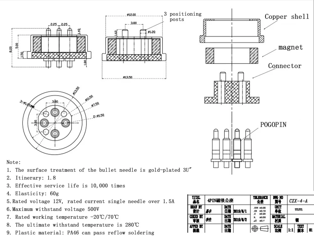 Comprar Resorte de succión de imán redondo de alta corriente 2/3/4/5P Pogo Pin macho hembra 2A 5V 10A 12V sonda DC conector magnético de carga de energía