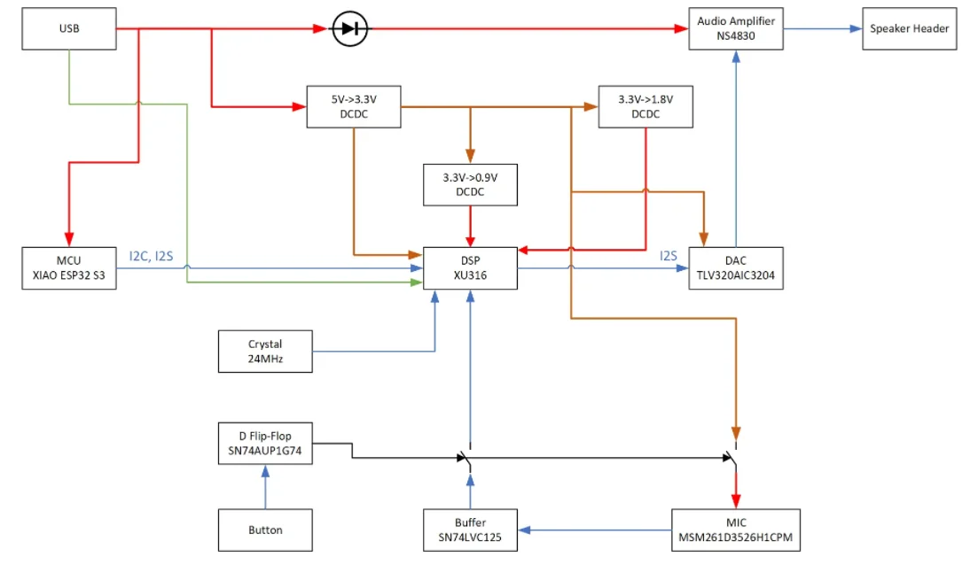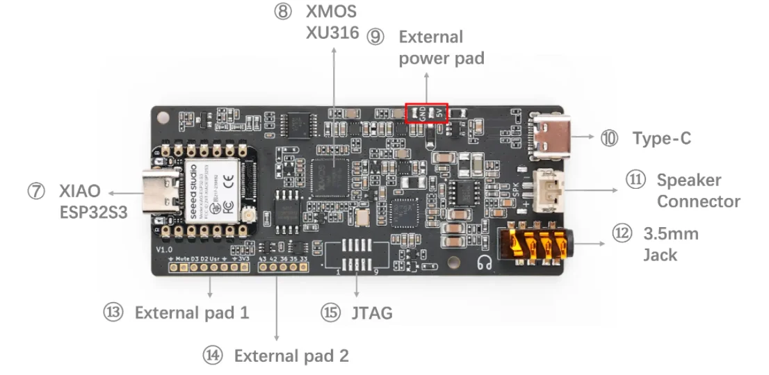 🌱Onboard AI NLU Algorithms: Powered by XMOS XU-316 AI sound and audio chip, the kit includes Natural Language Understanding algorithms for Interference Cancellation (IC), Acoustic Echo Cancellation, Noise Suppression, and Automatic Gain Control (AGC), enabling high quality voice capture.