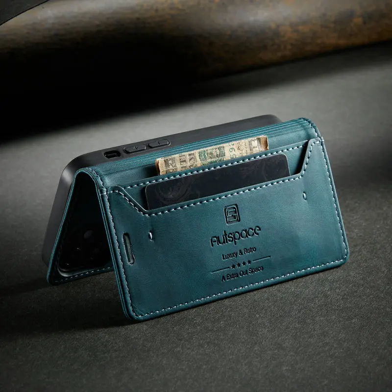 2 ranuras para tarjetas para las identificaciones de sus tarjetas también cuenta con bolsillo para dinero en efectivo. Combinación perfecta de billetera y funda para teléfono móvil.