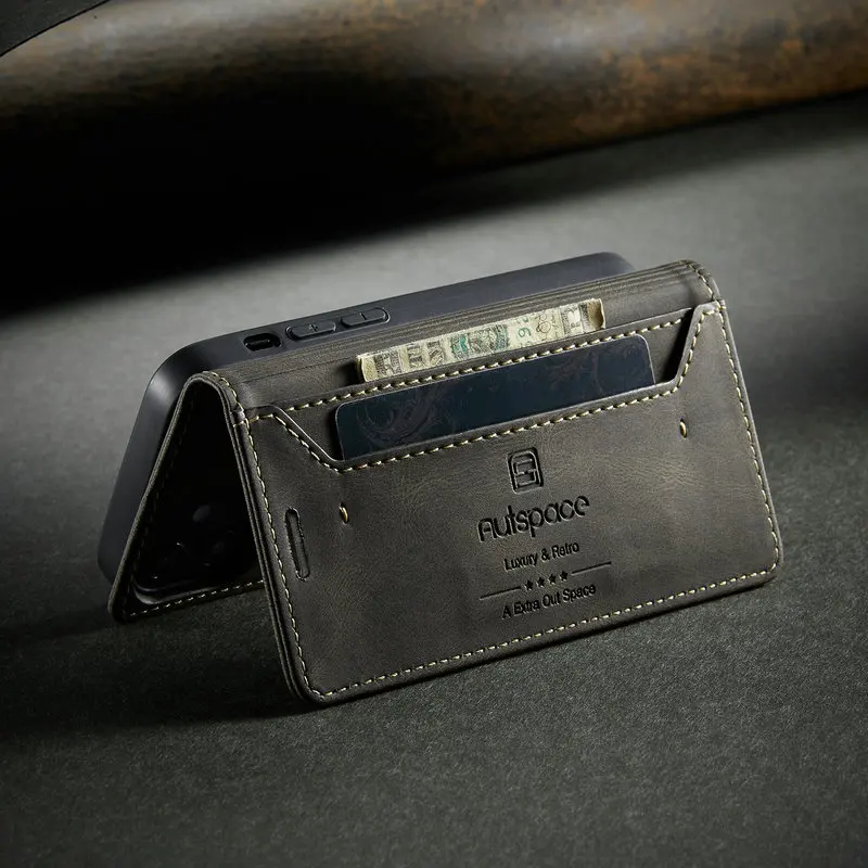 2 ranuras para tarjetas para las identificaciones de sus tarjetas también cuenta con bolsillo para dinero en efectivo. Combinación perfecta de billetera y funda para teléfono móvil.