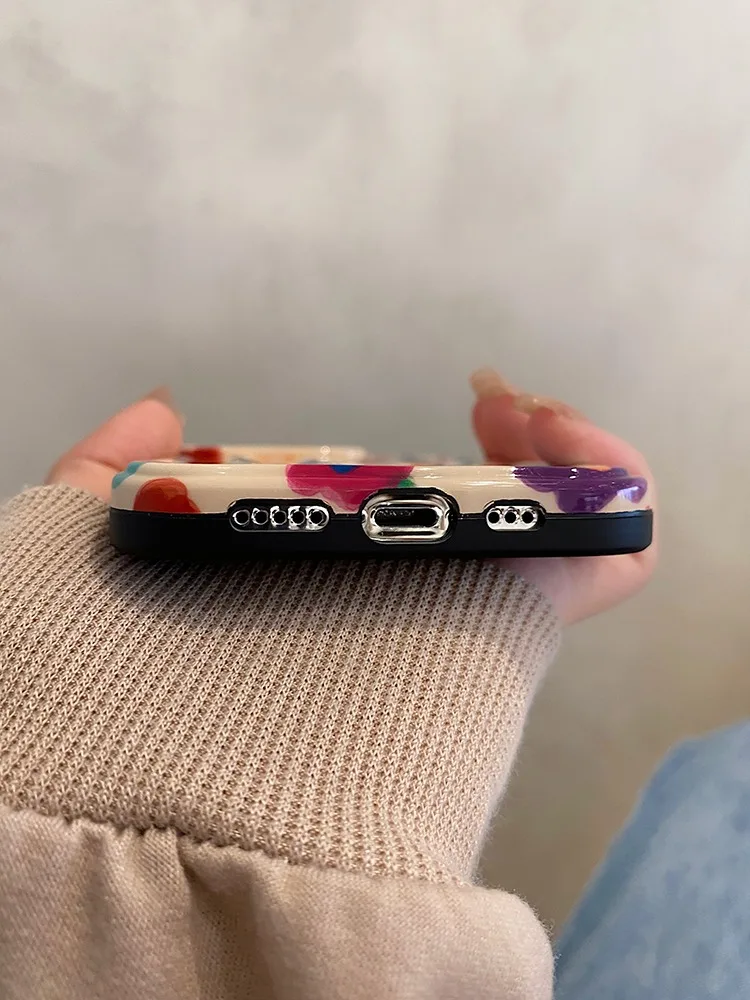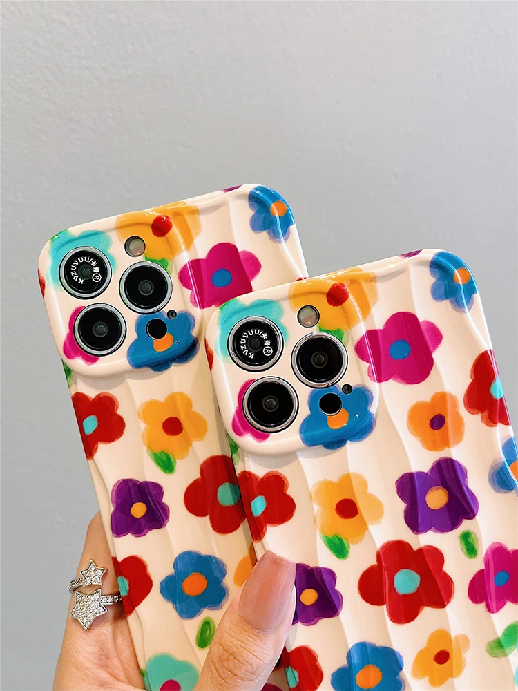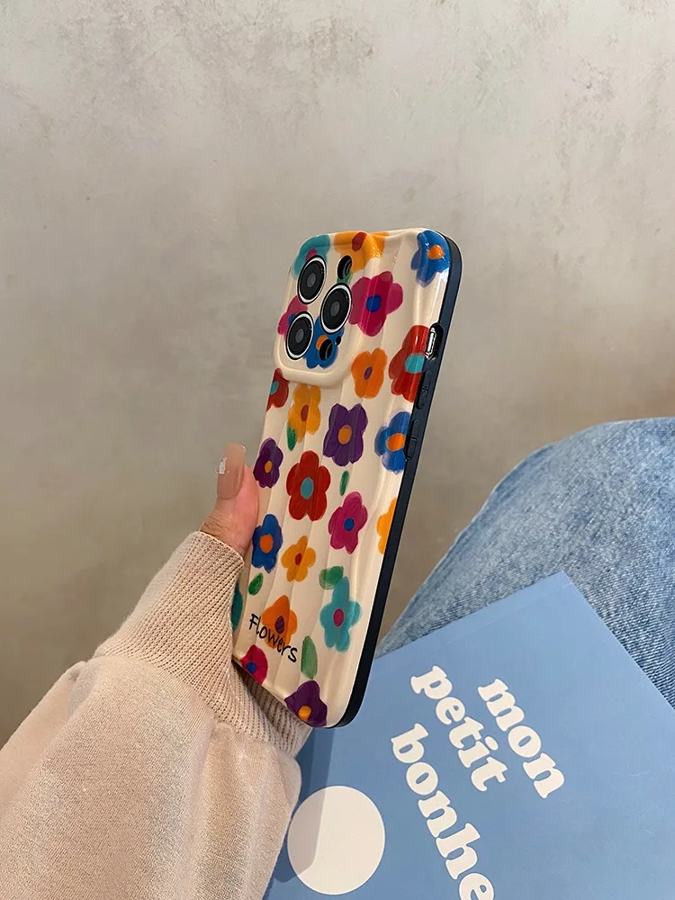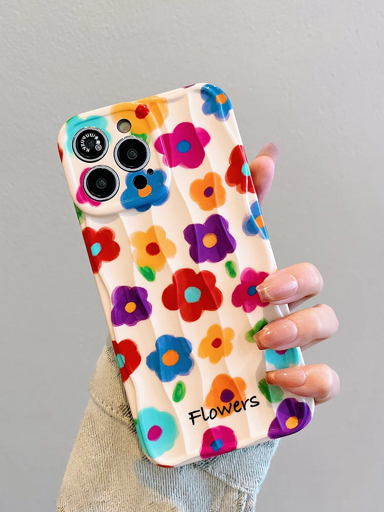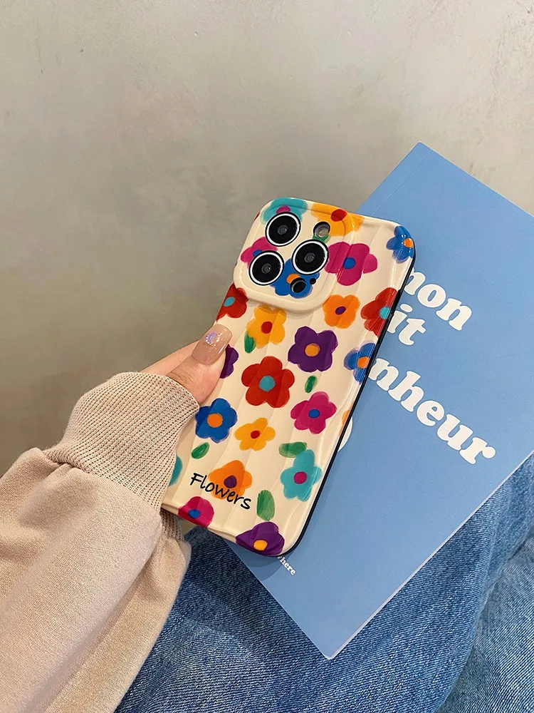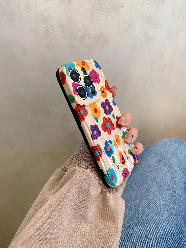 Comprar Retro verano jardín flores pintura al óleo onda contraportada para iPhone 11 12 13 14 15 16 Pro Max caso