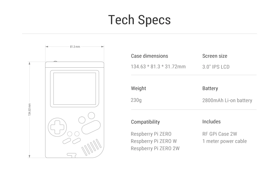 RETROFLAG GPI CASE 2W con función de movimiento lento Raspberry Pi Zero,Zero W,Zero 2W Card Disipadores de calor de cobre con cierre seguro