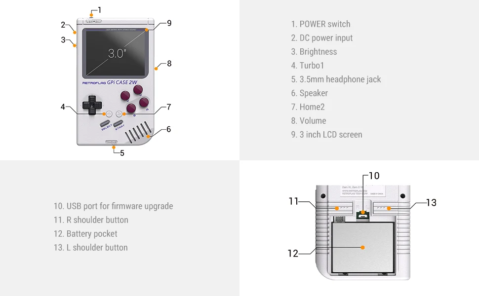 6. Igual que la primera generación, todavía tiene la tecla de interruptor, casete, ranura para tarjeta Micro SD, rueda de ajuste de volumen, rueda de ajuste de brillo de pantalla y salida de audio de 3,5 MM;
