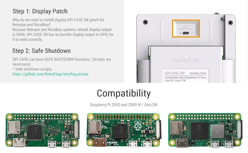 Comprar RETROFLAG-carcasa GPI de 2W con función de movimiento lento, disipadores de calor de cobre con tarjeta de apagado seguro, Raspberry Pi Zero,Zero W,Zero 2W