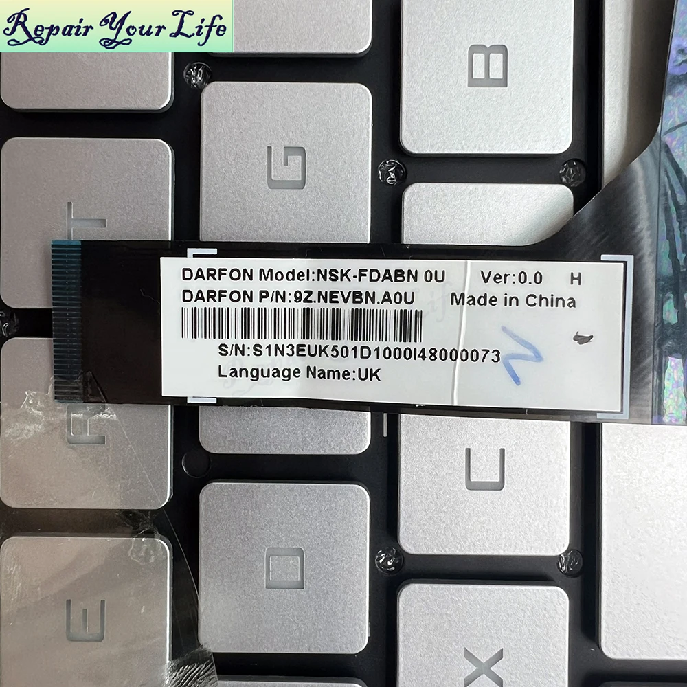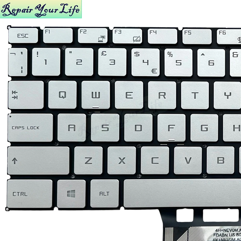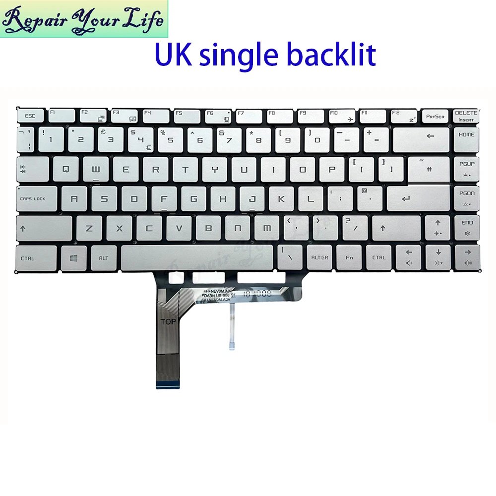 Teclado ruso español retroiluminado del Reino Unido para MSI GS65 PS63 GF63 WF65 WS65 MS-16R1 16R4 plateado Teclados 9Z.NEVBN.A0R