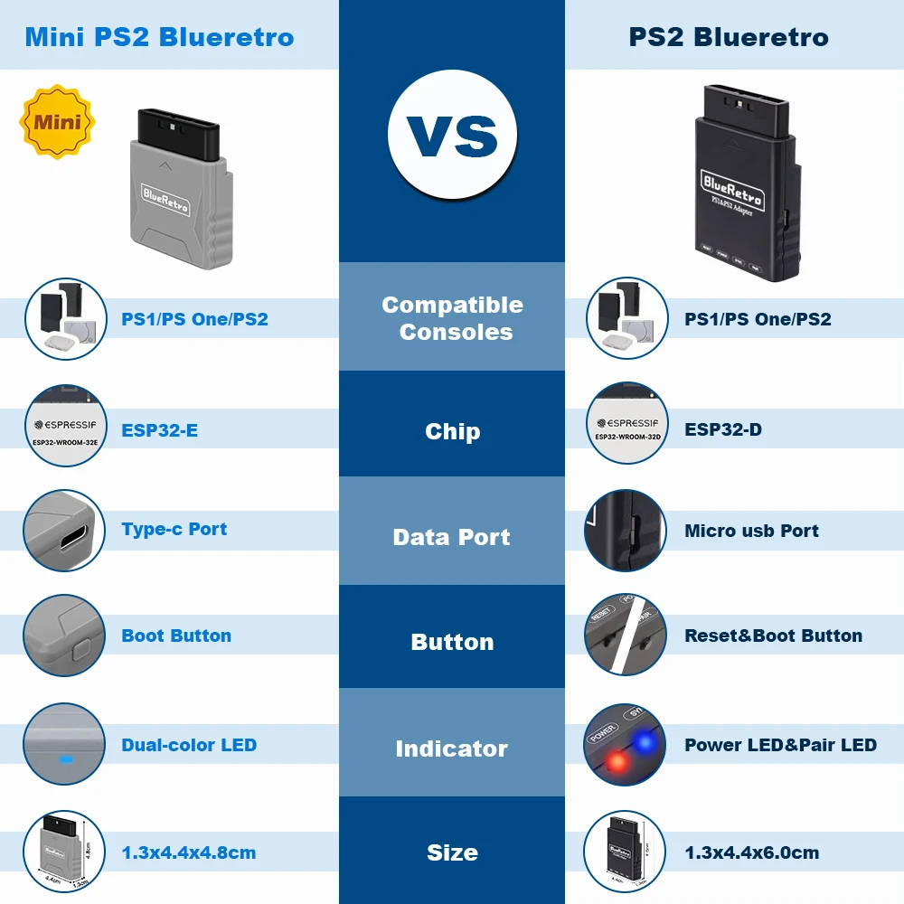 Comprar RetroScaler-adaptador Blueretro Mini PS1 PS2 para consola PS One PS 1/2, para Switch Pro PS4 PS5 Xbox Series X, controlador inalámbrico