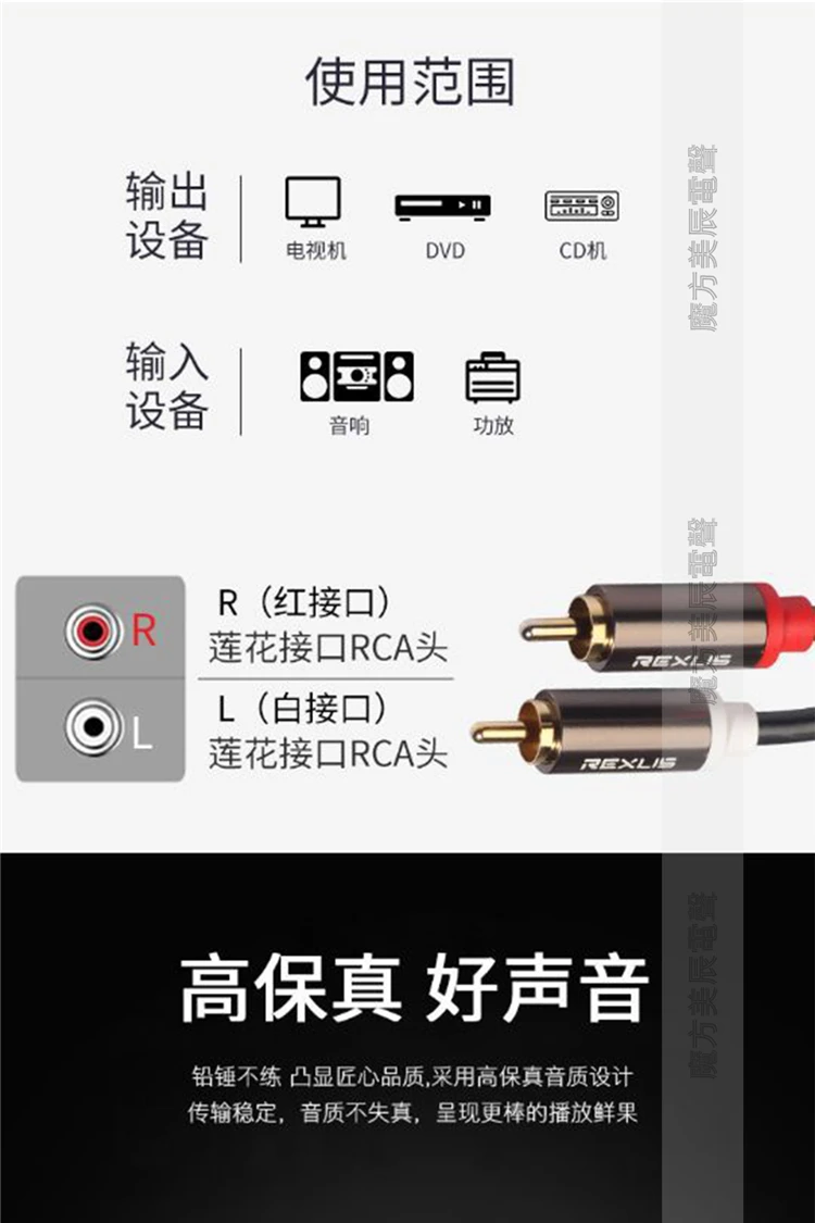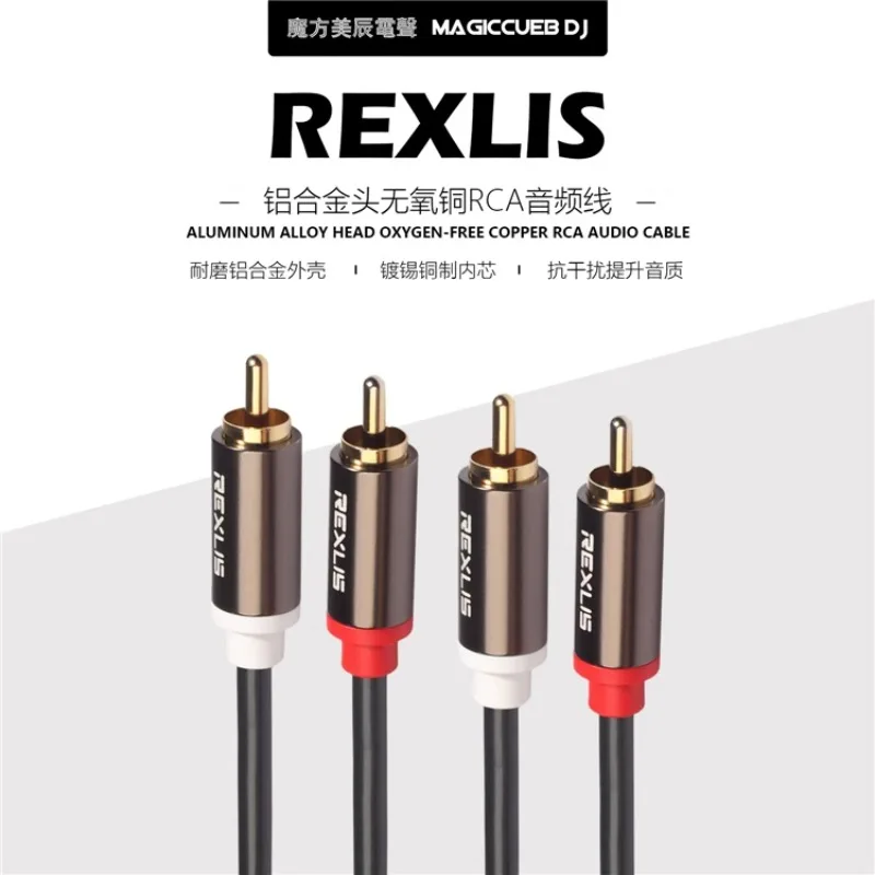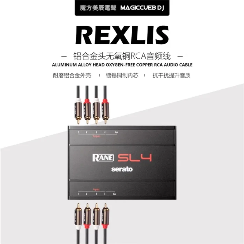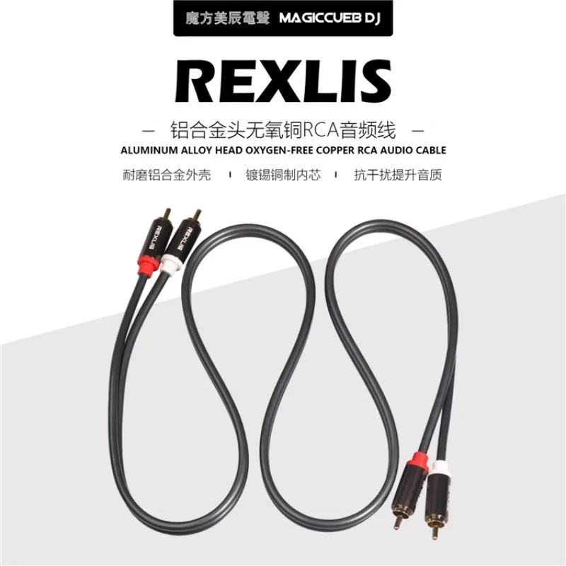 Comprar REXLIS 2RCA cabeza de aleación de aluminio cobre sin oxígeno, mezclador de reproductor de discos tarjeta de sonido DJ, cable de audio de disco lotus