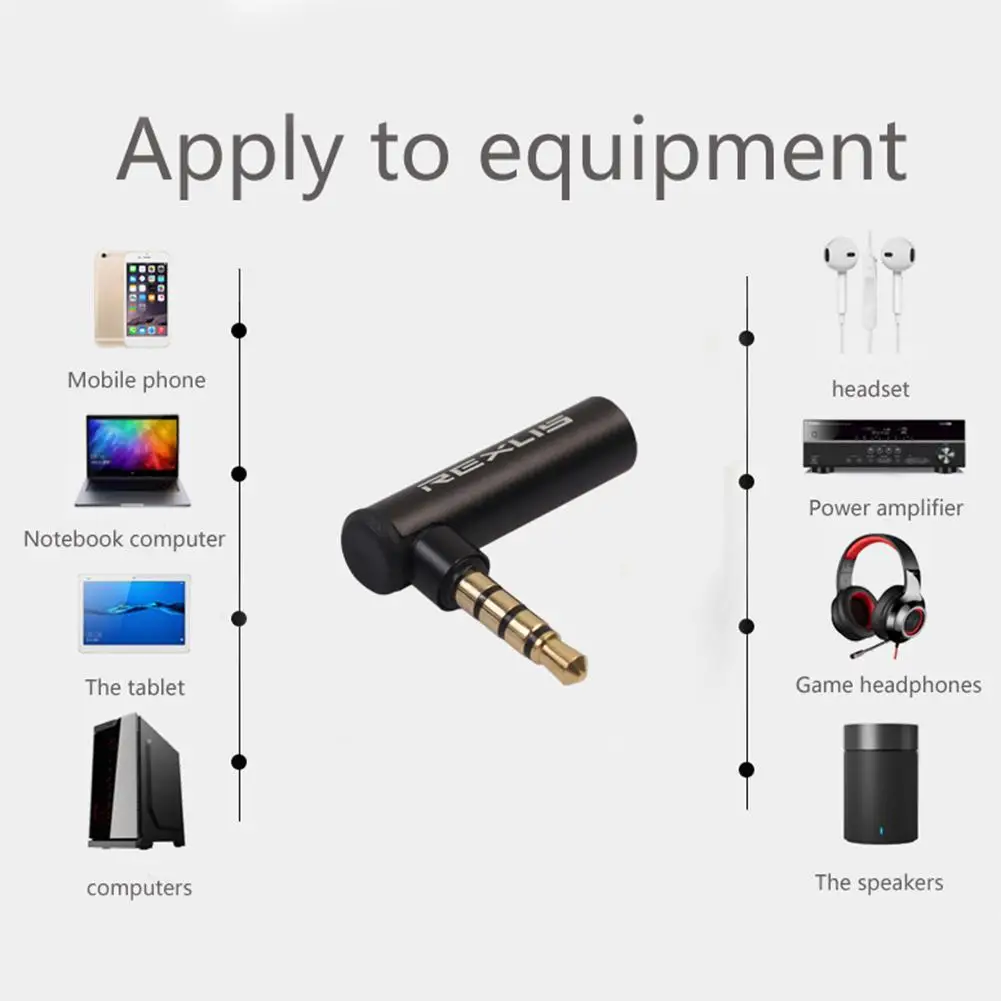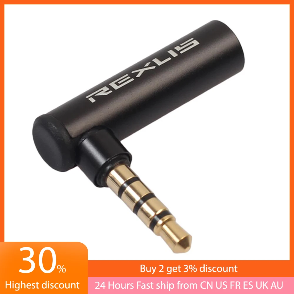 Comprar REXUS-Adaptador de Audio macho a hembra, conector de 90 grados con ángulo recto de 3,5mm, convertidor de Audio, tipo L, auriculares estéreo, conector de micrófono
