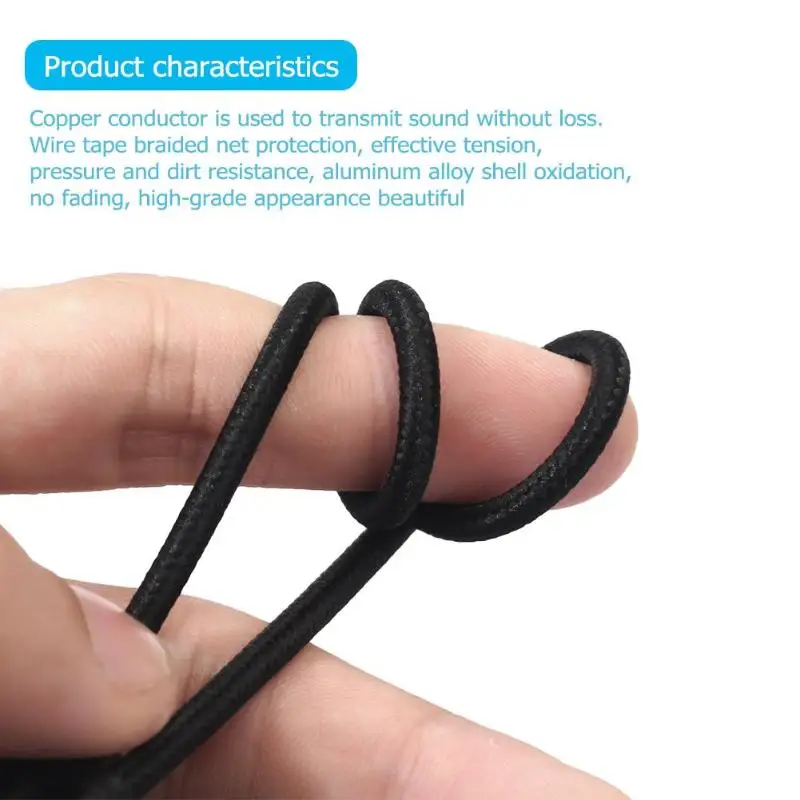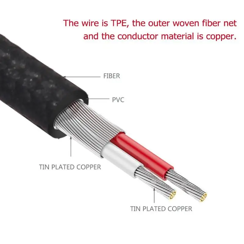 Material: carcasa de aleación de aluminio, cubierta exterior de cable TPE + trenzado de algodón